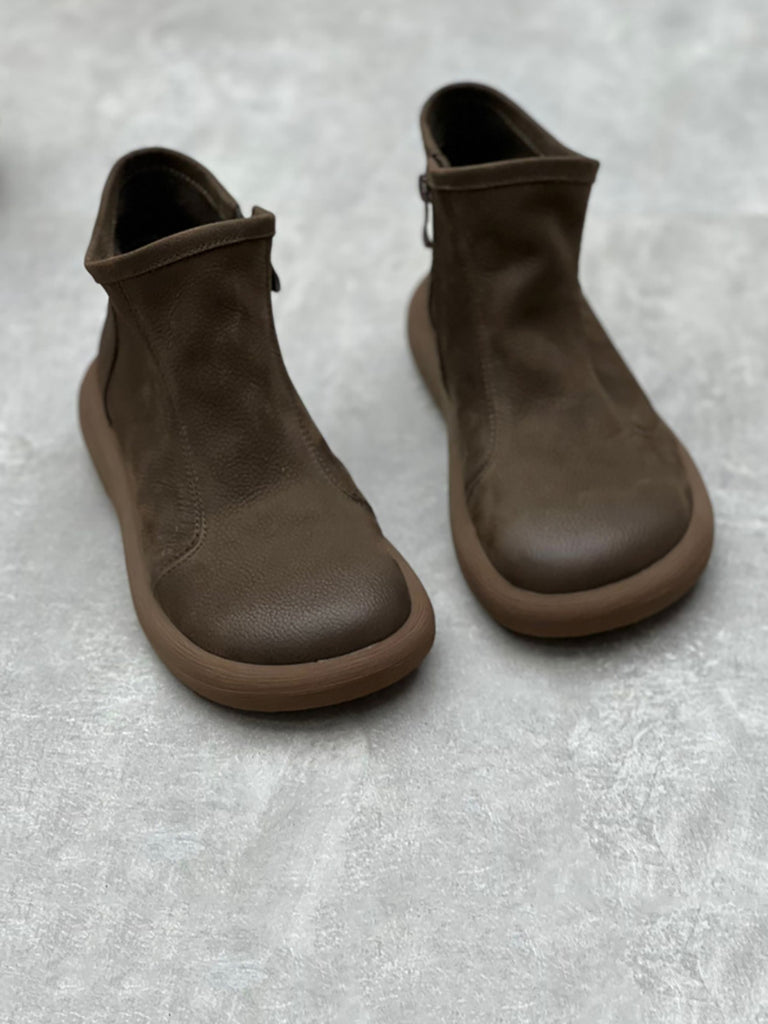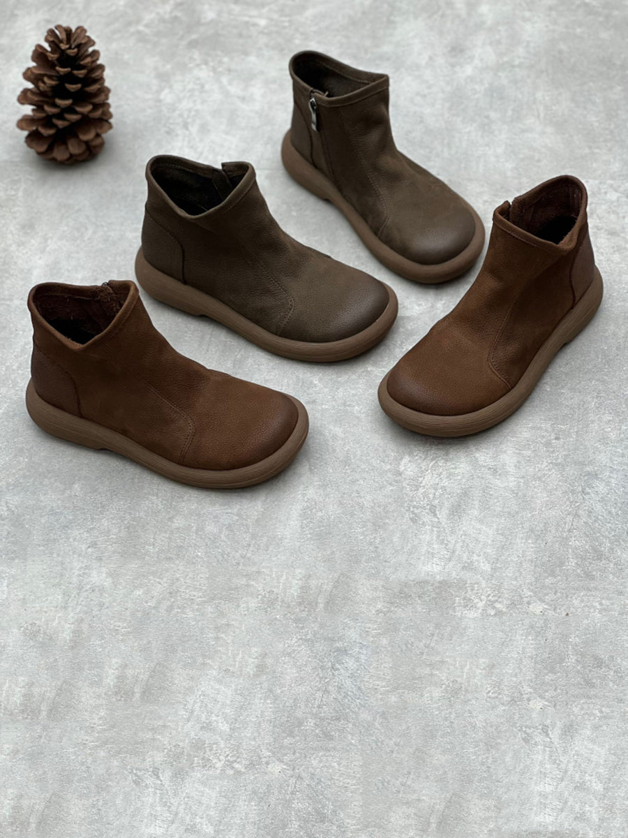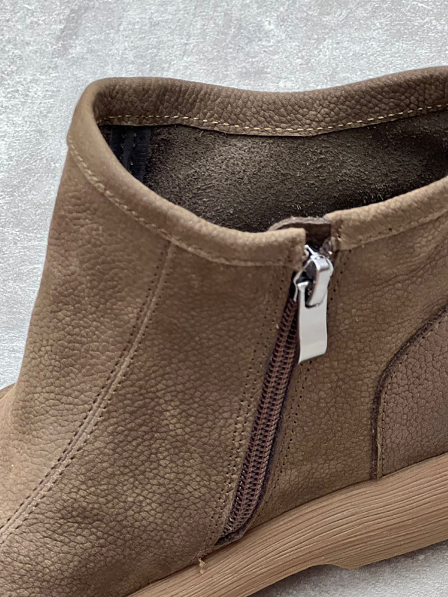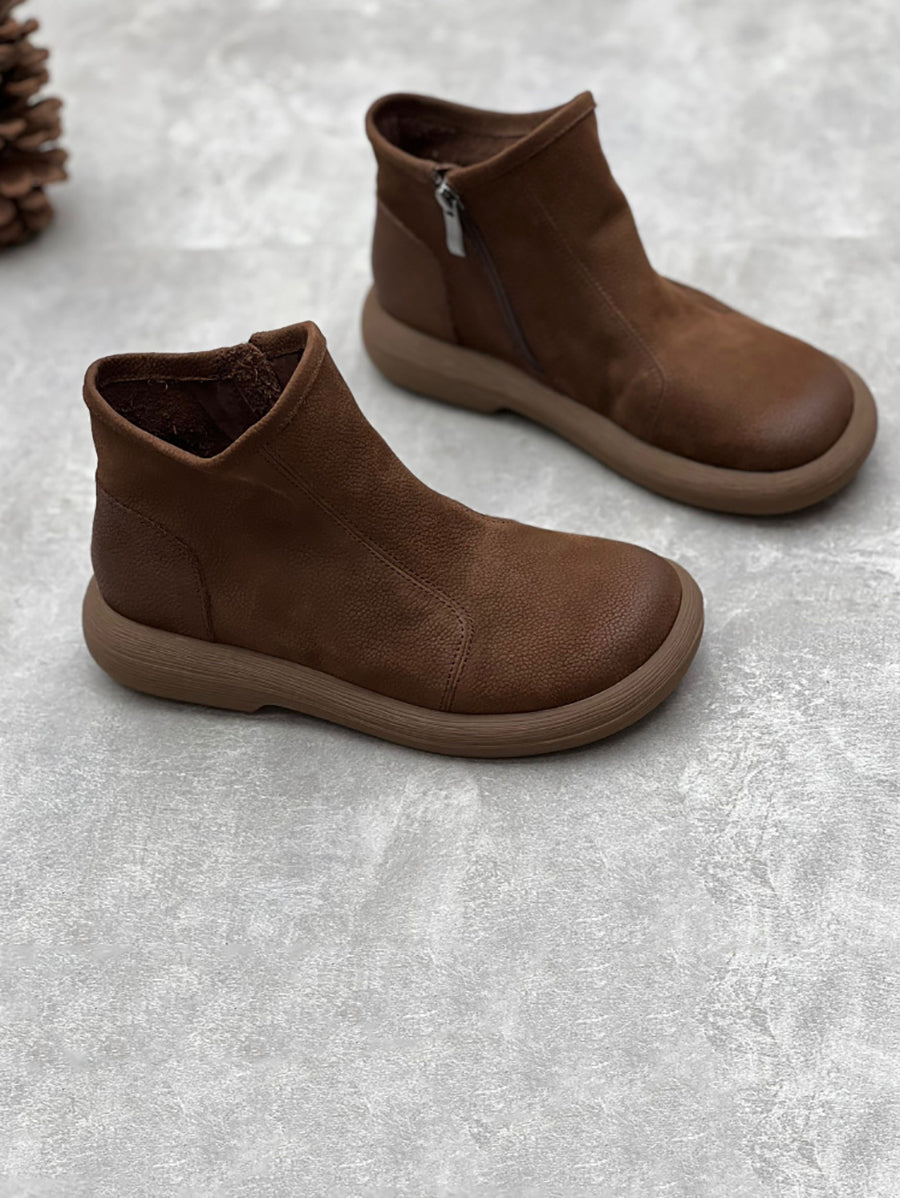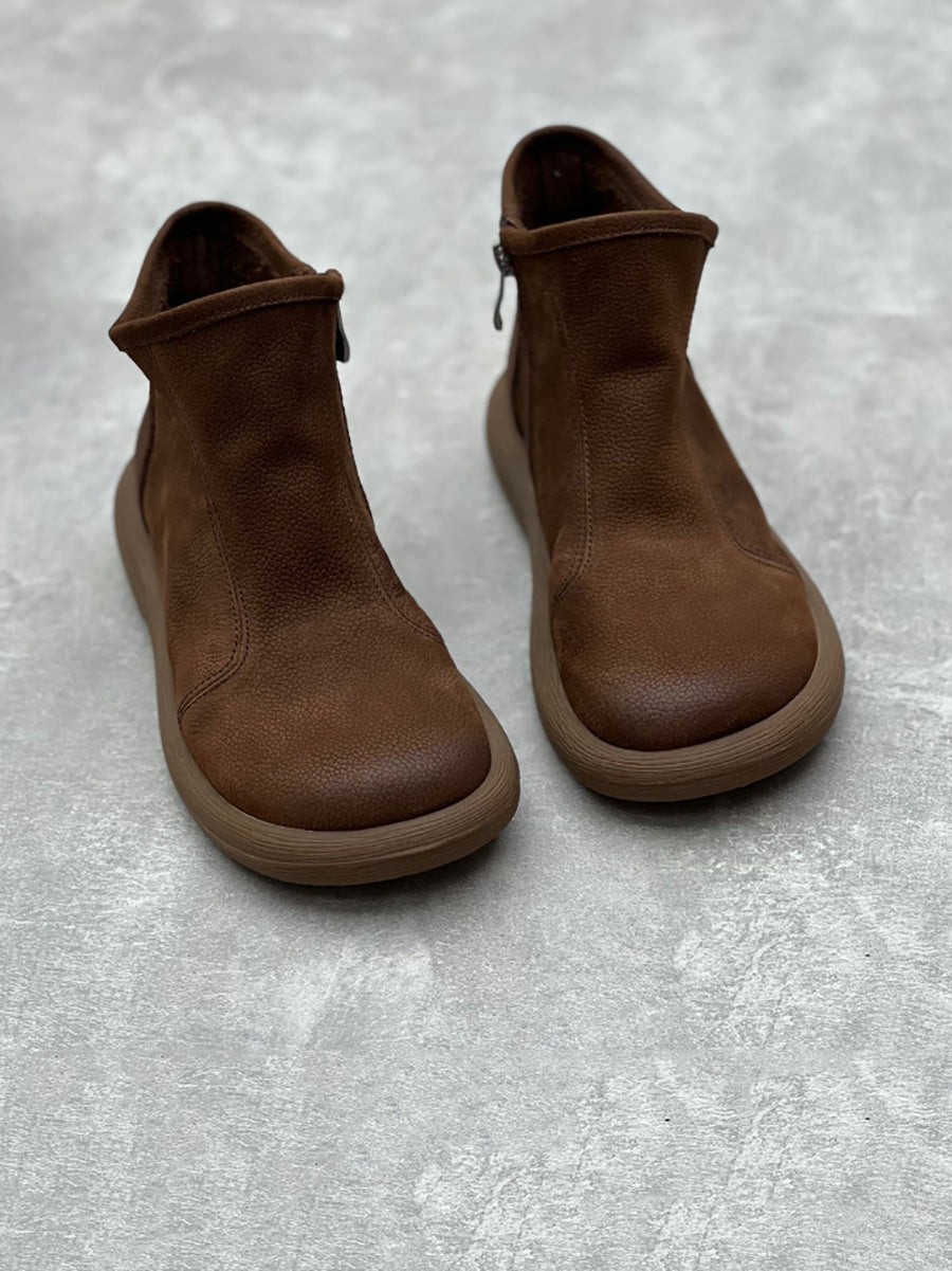 Dámské zimní pevné měkké kožené ploché boty na zip