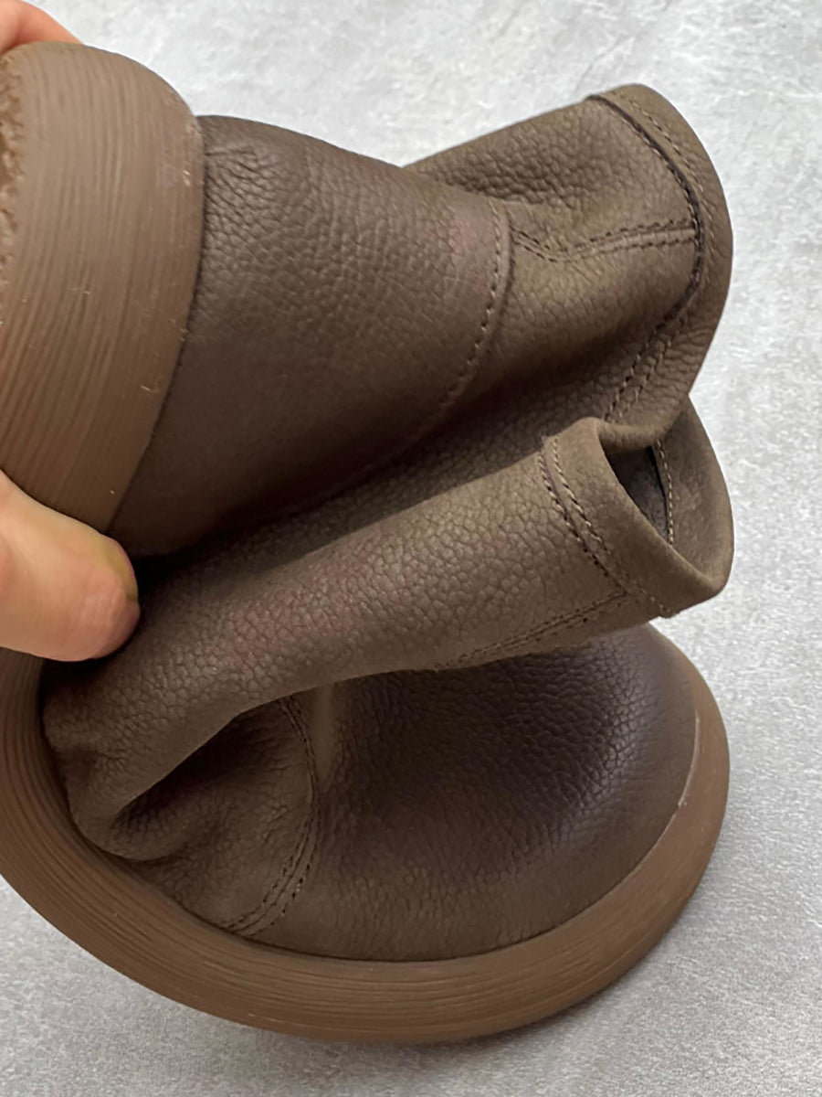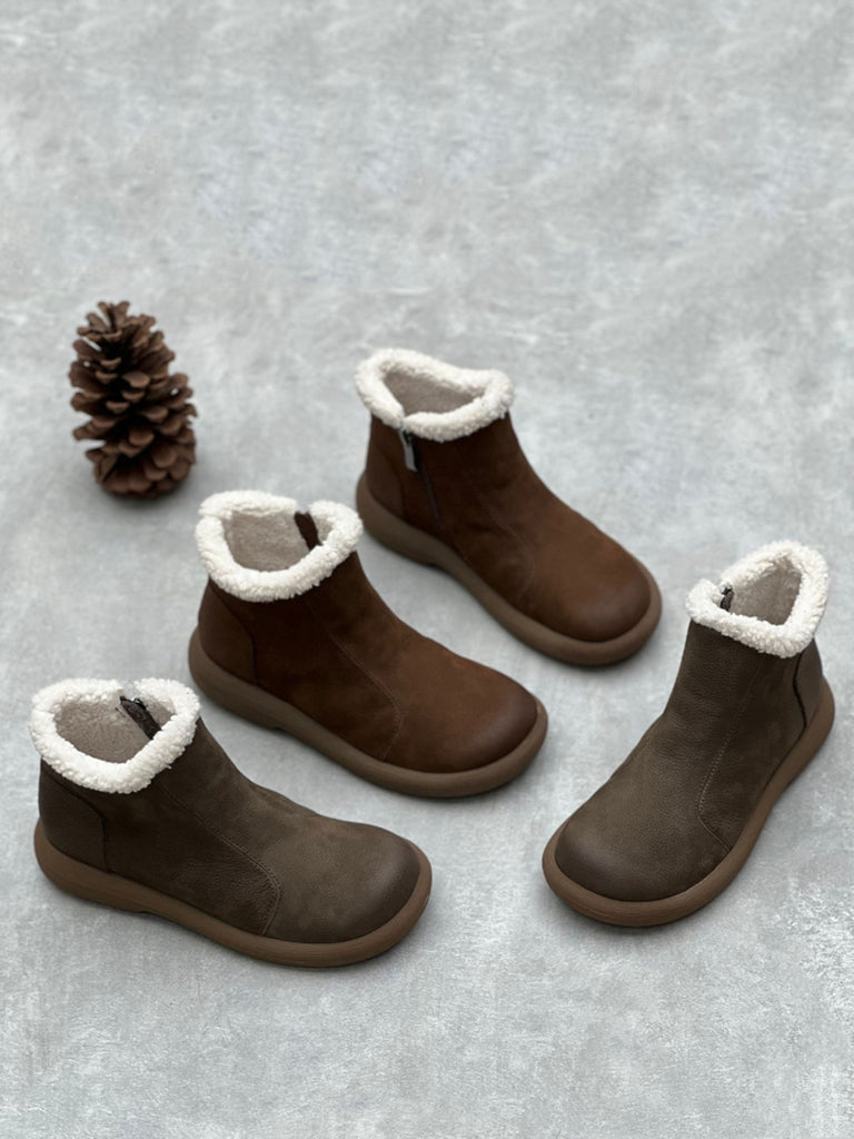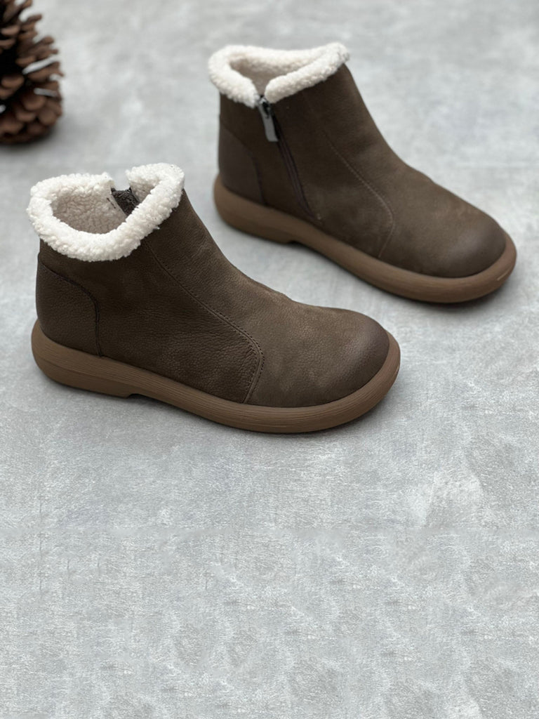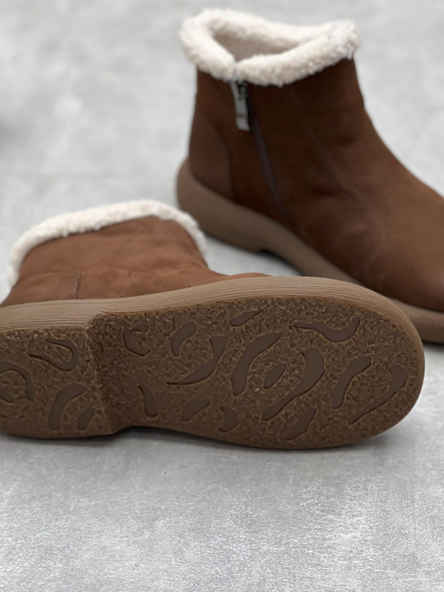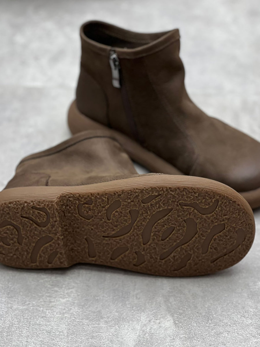 Dámské zimní pevné měkké kožené ploché boty na zip