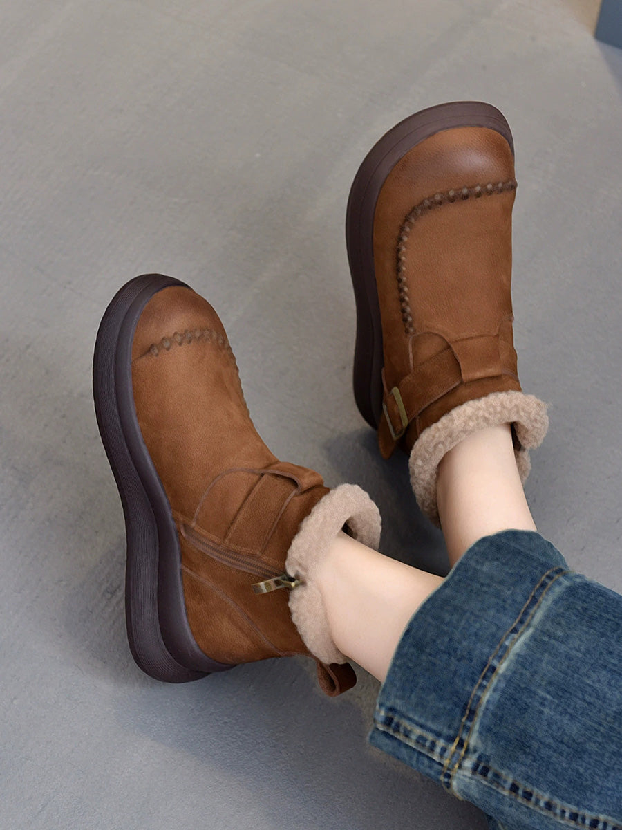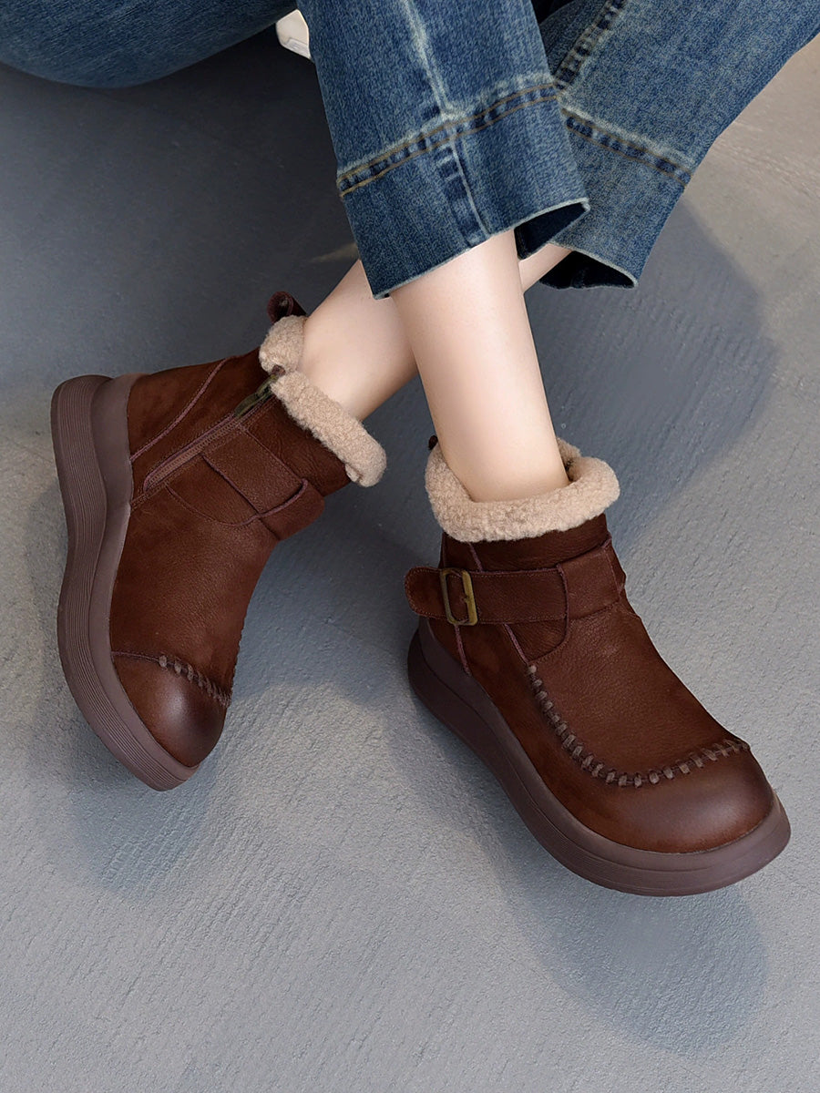 Dámské zimní martinské boty z pravé kůže s fleecovou podšívkou