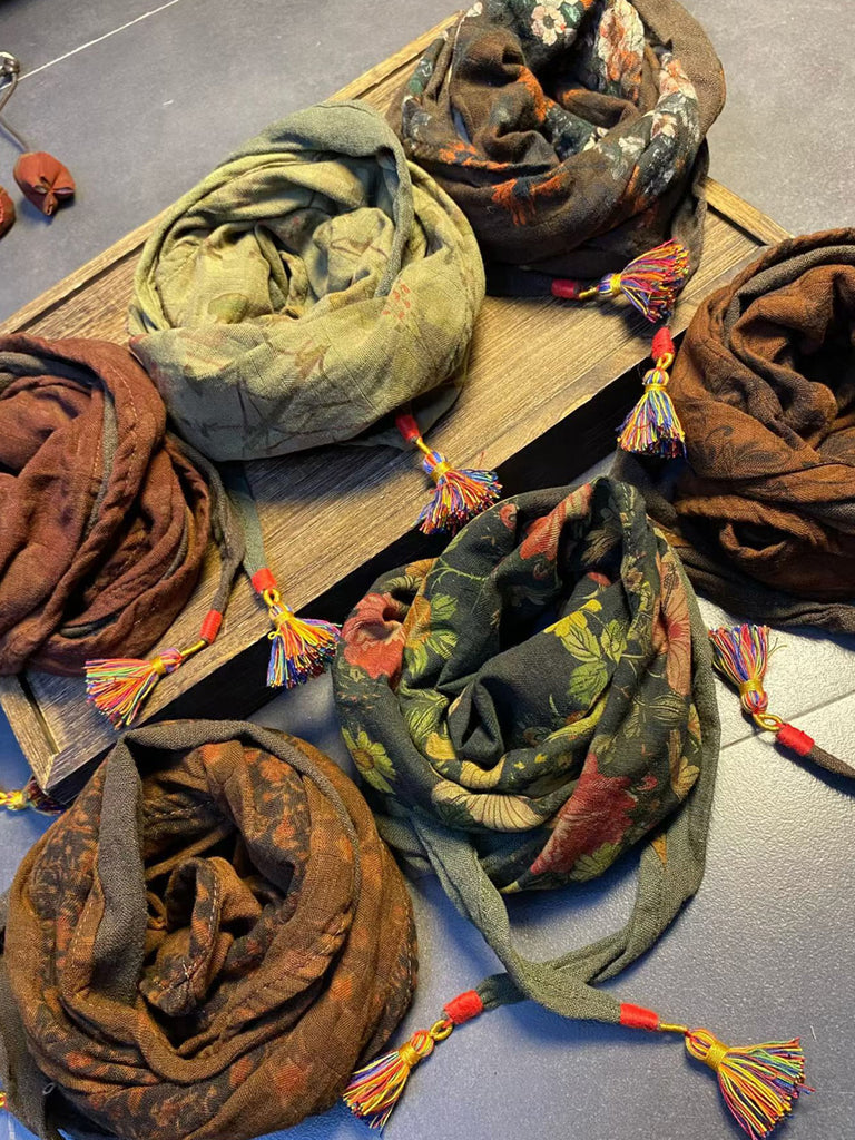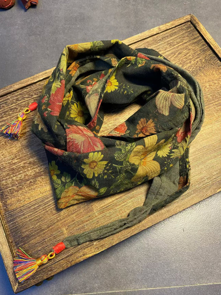 Vintage květinový šátek se střapci