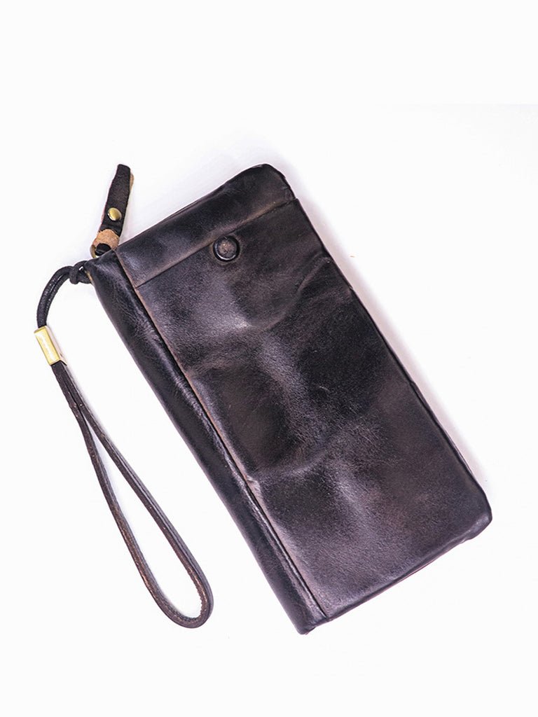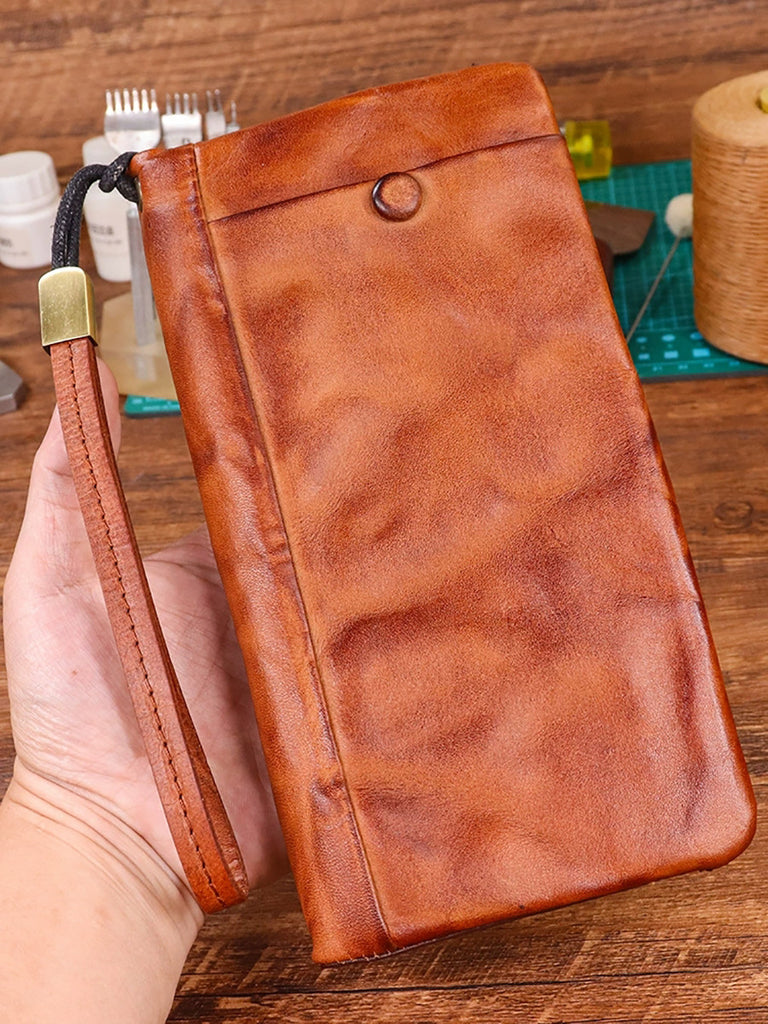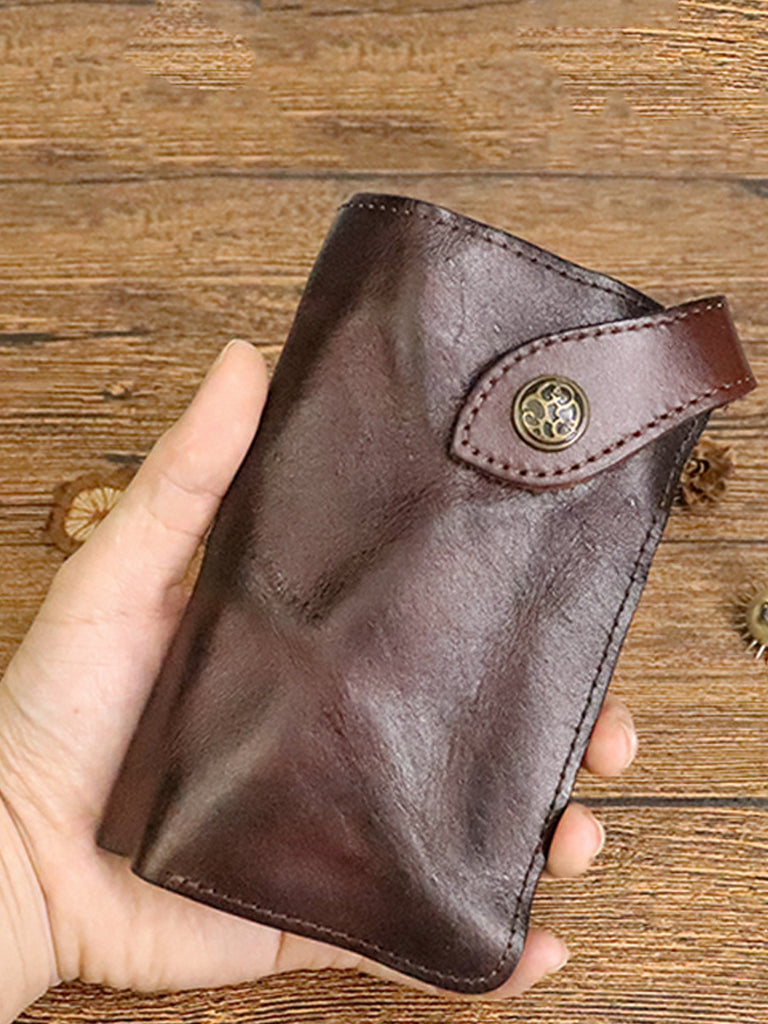 Vintage čistě barevná kožená multifunkční peněženka