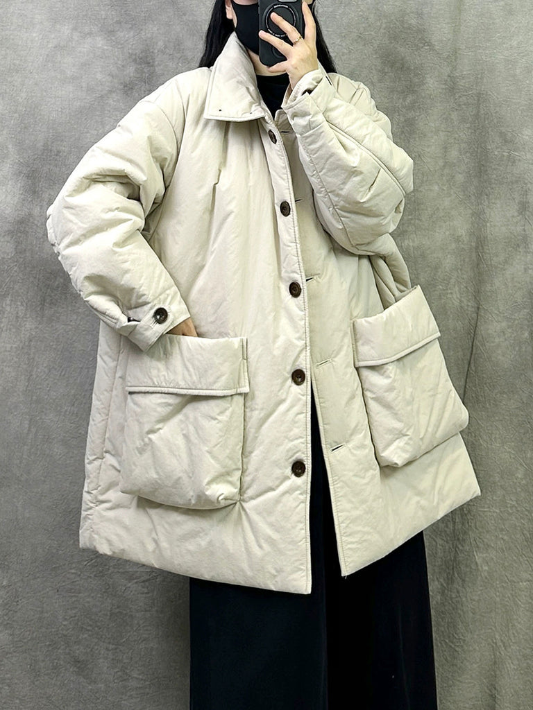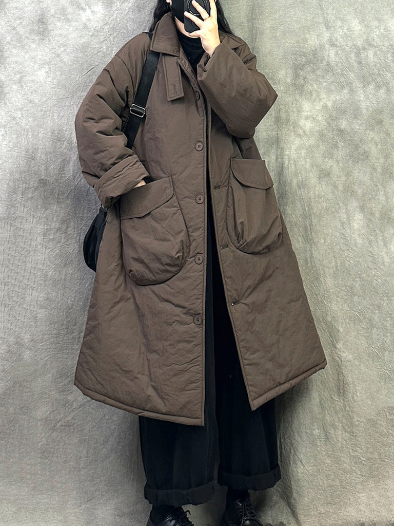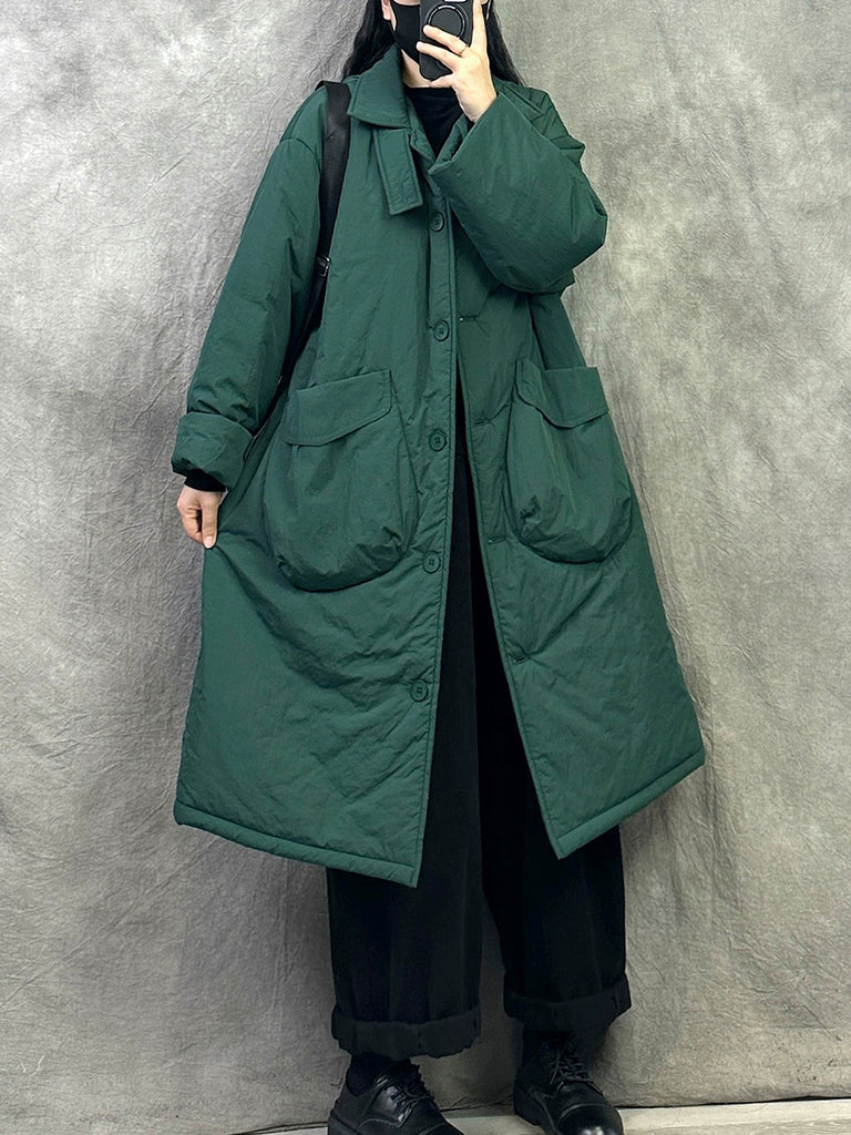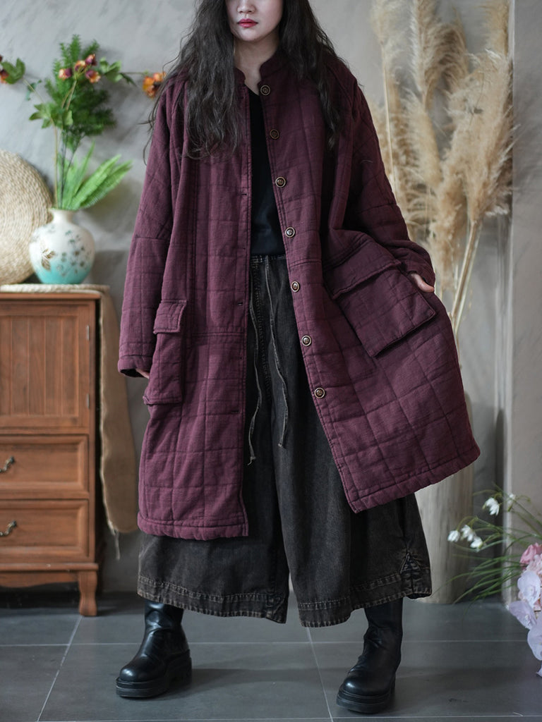 Dámský retro zimní prošívaný kabát s čistě barevným stojáčkem