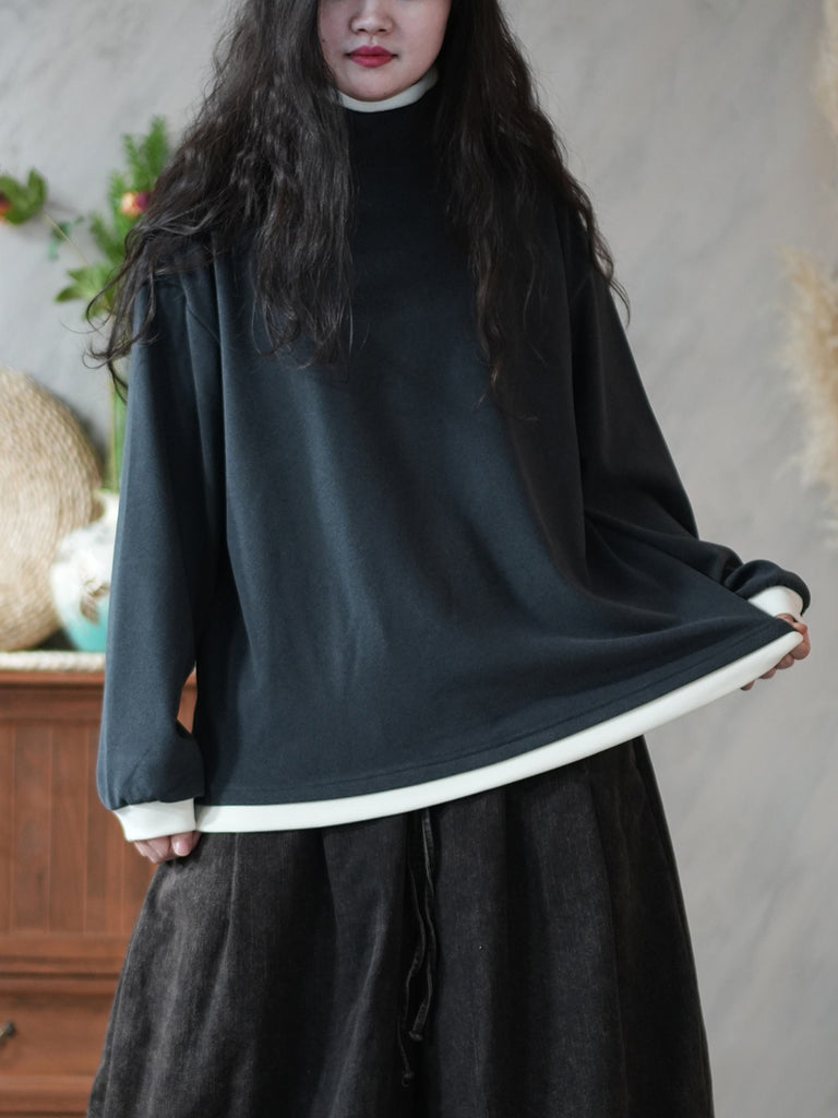 Dámská zimní barevně blokovaná halenka s rolákem ze 100% bavlny