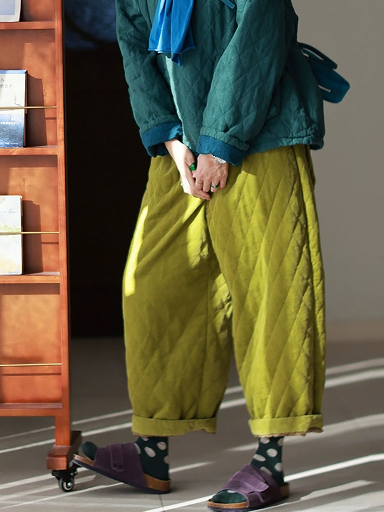 Dámské zimní retro bavlněné kalhotky s prošívanou podšívkou v čistých barvách