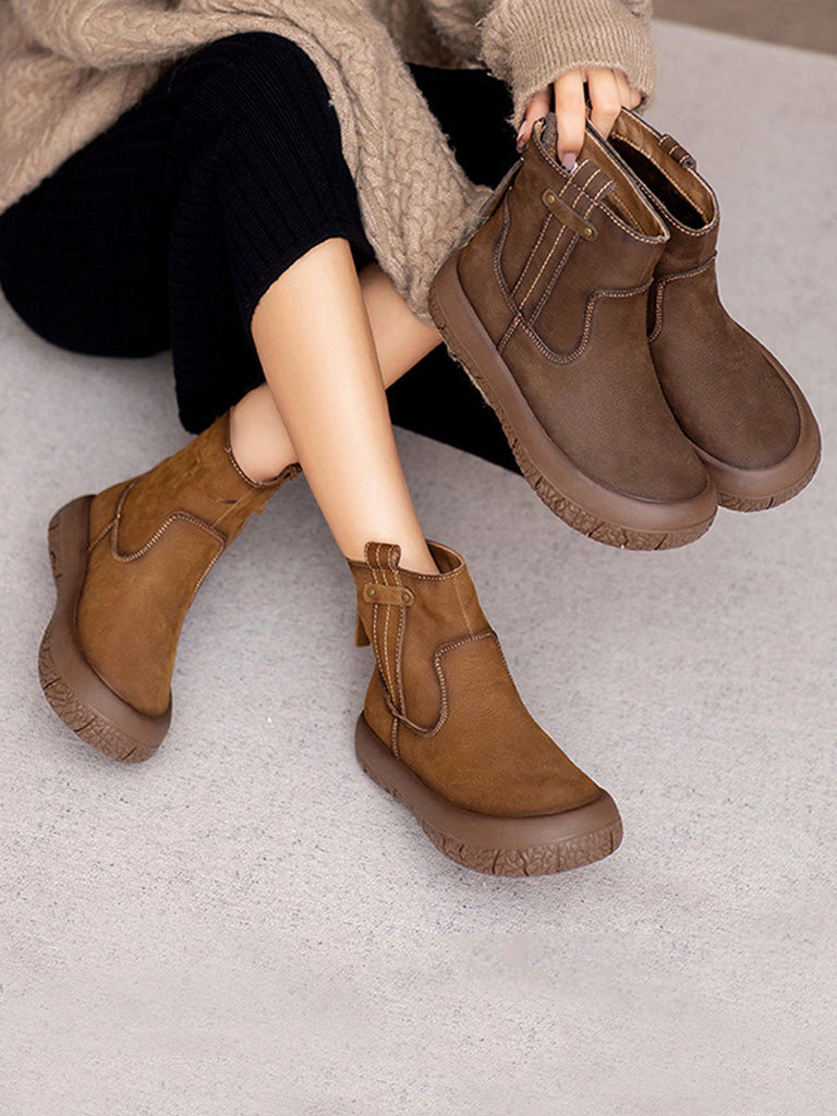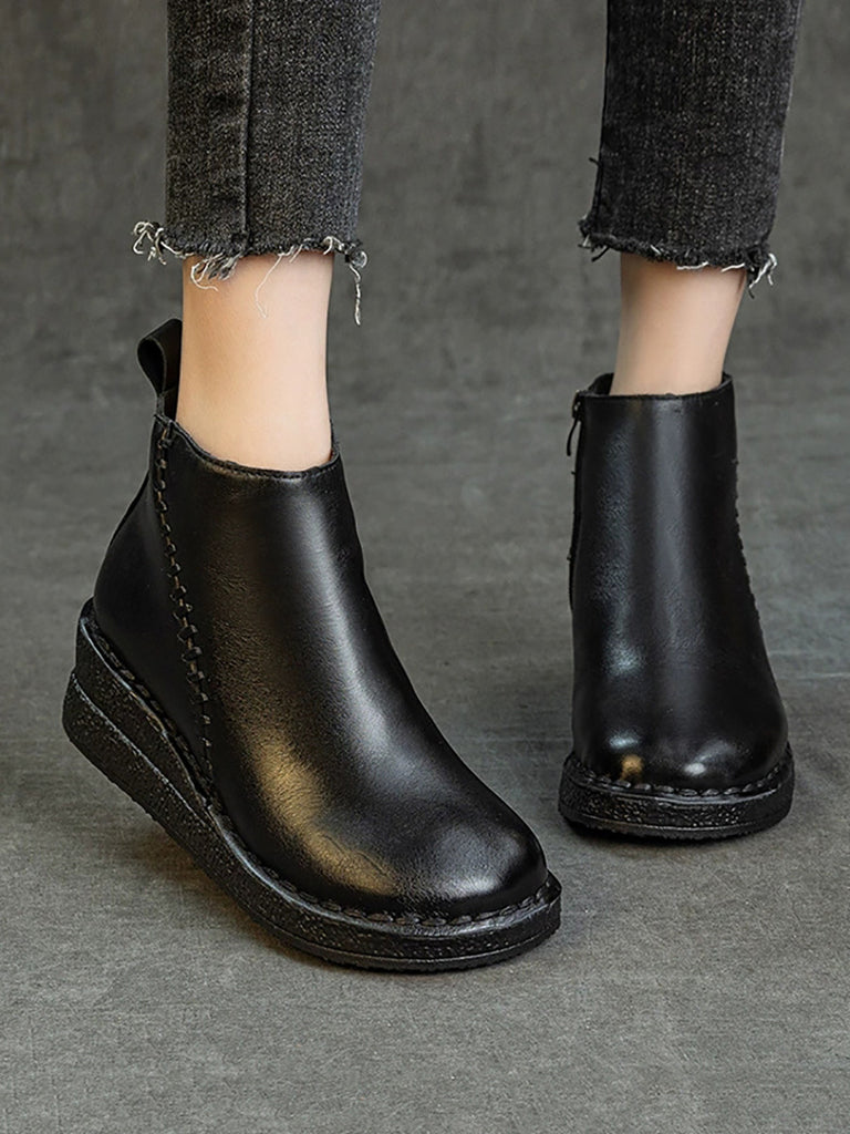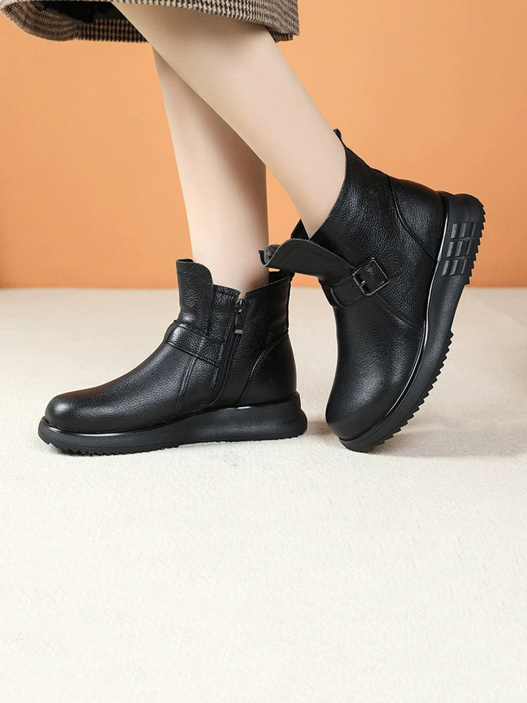 Dámské kotníkové boty z pravé kůže na platformě s fleecovou podšívkou