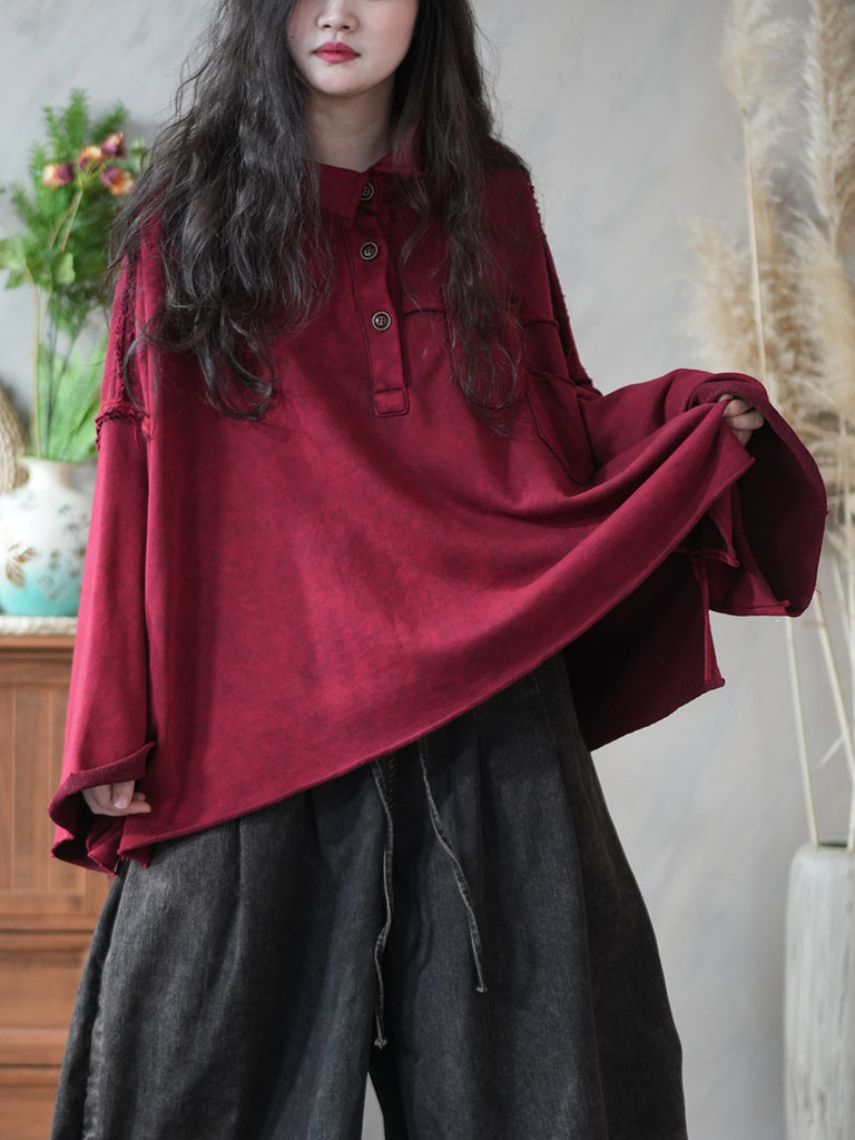 Dámská vintage podzimní čistě barevná halenka s odkládacím límcem