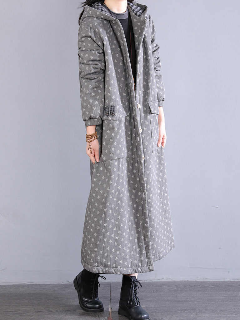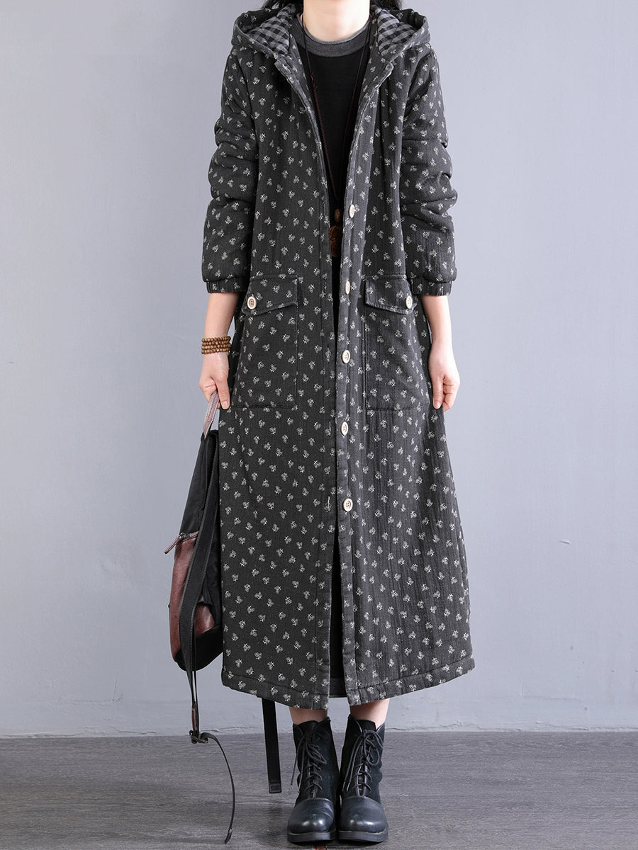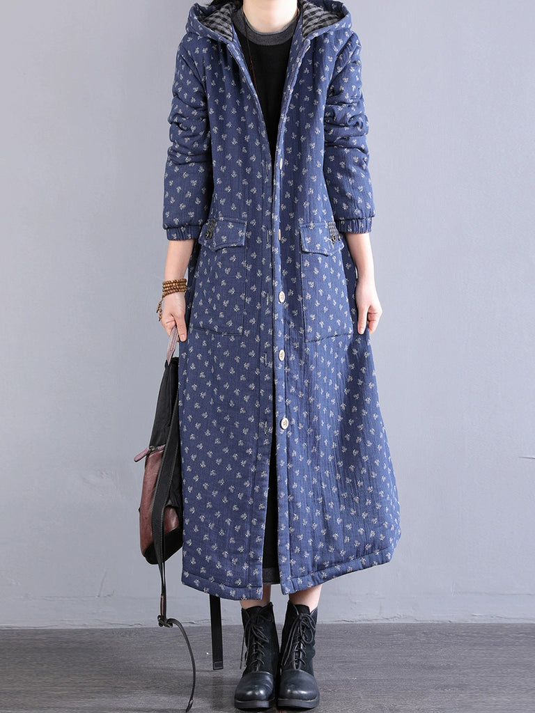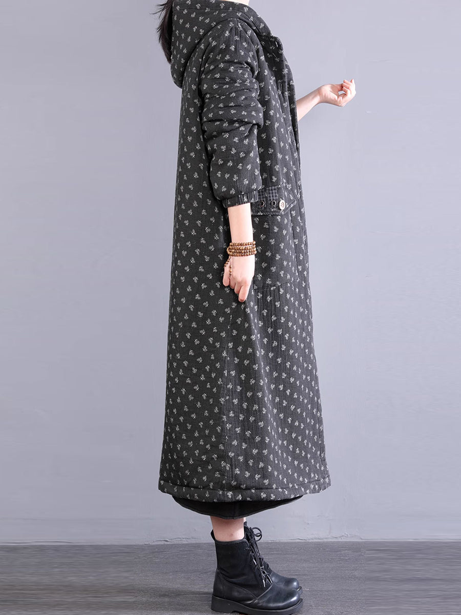 Dámský retro zimní květinový prošívaný kabát s kapucí