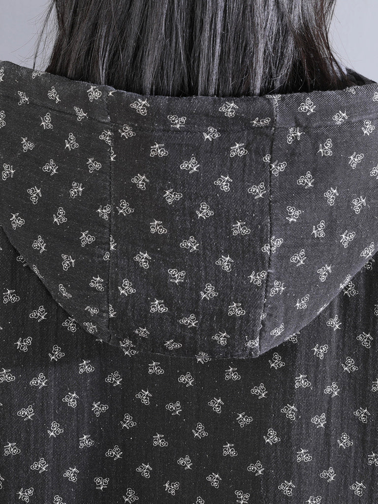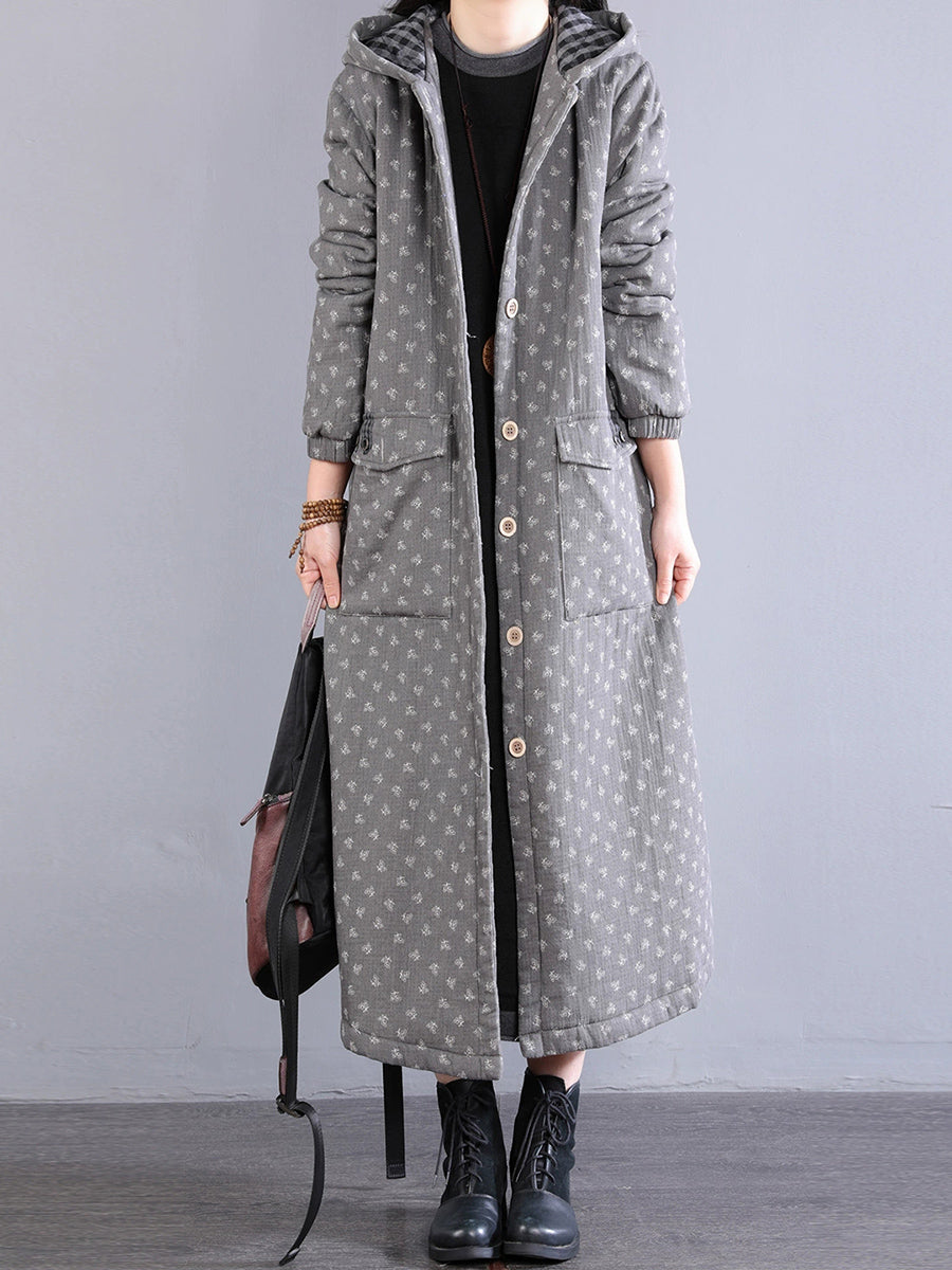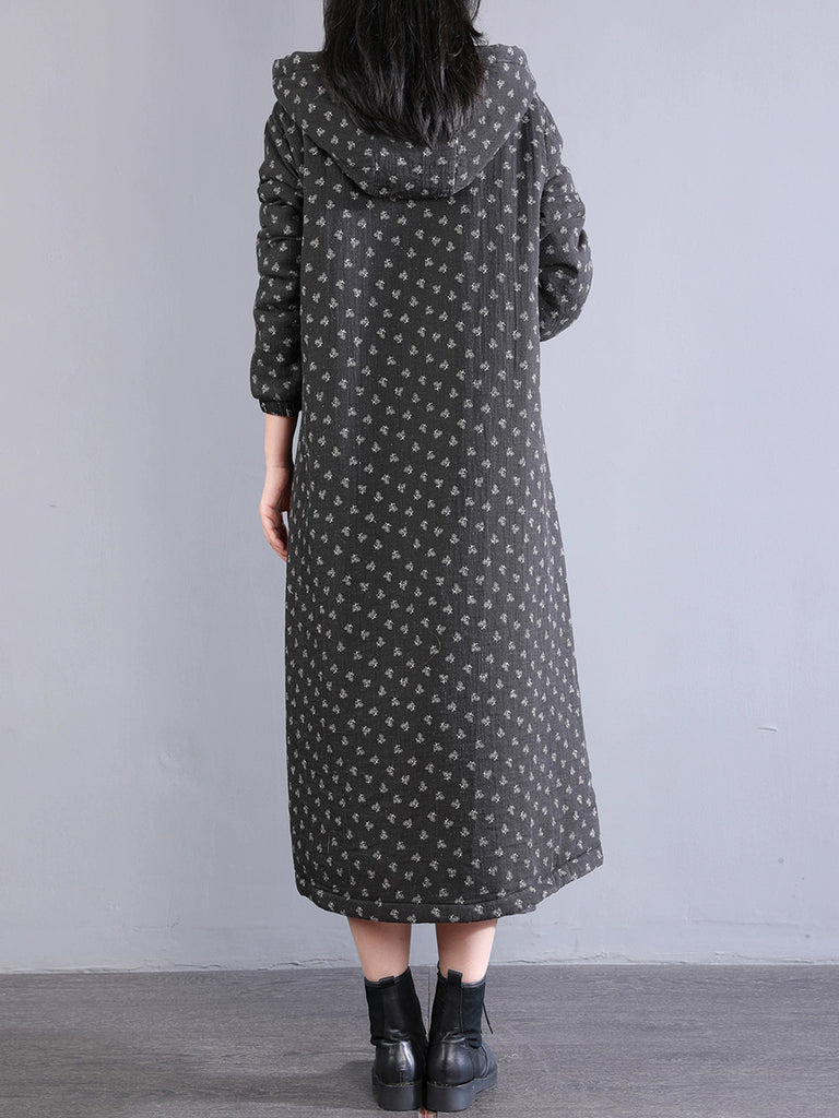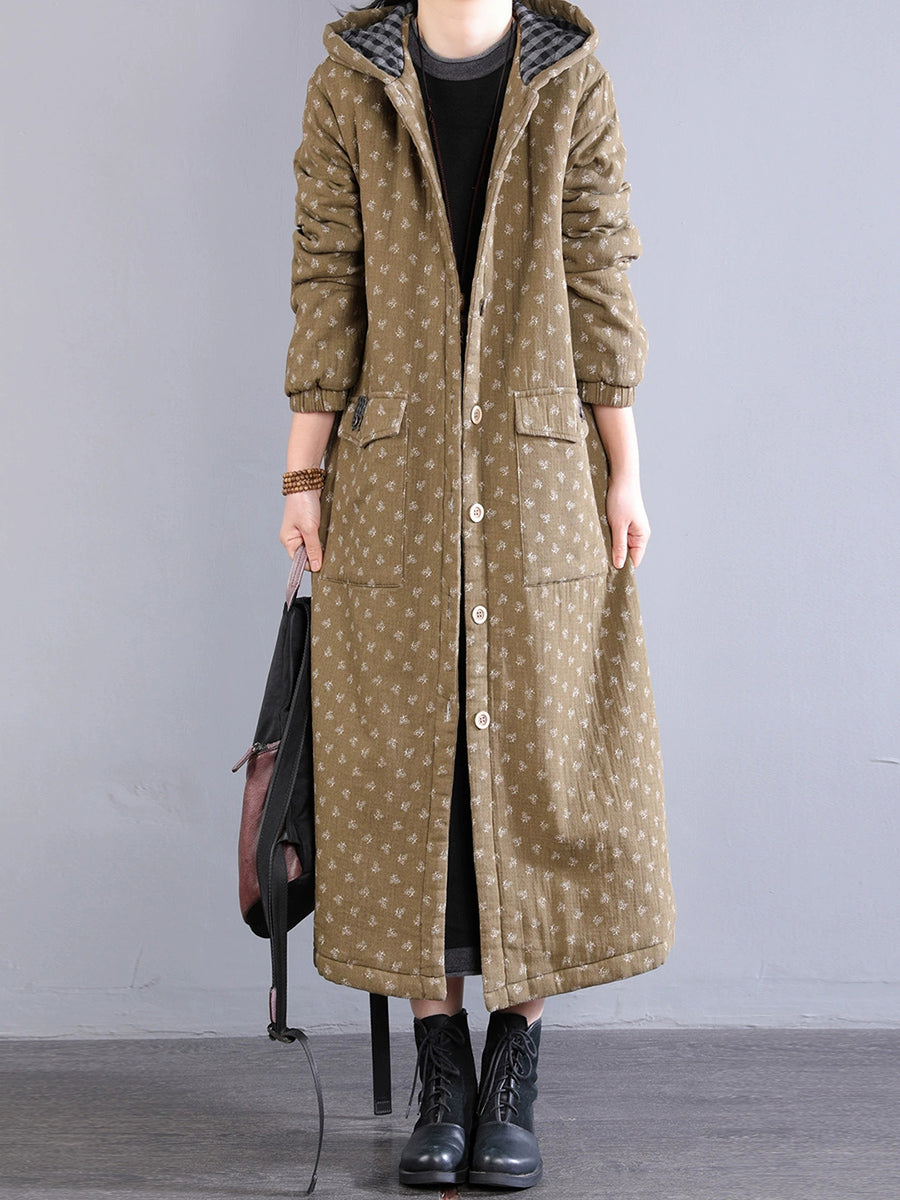 Dámský retro zimní květinový prošívaný kabát s kapucí
