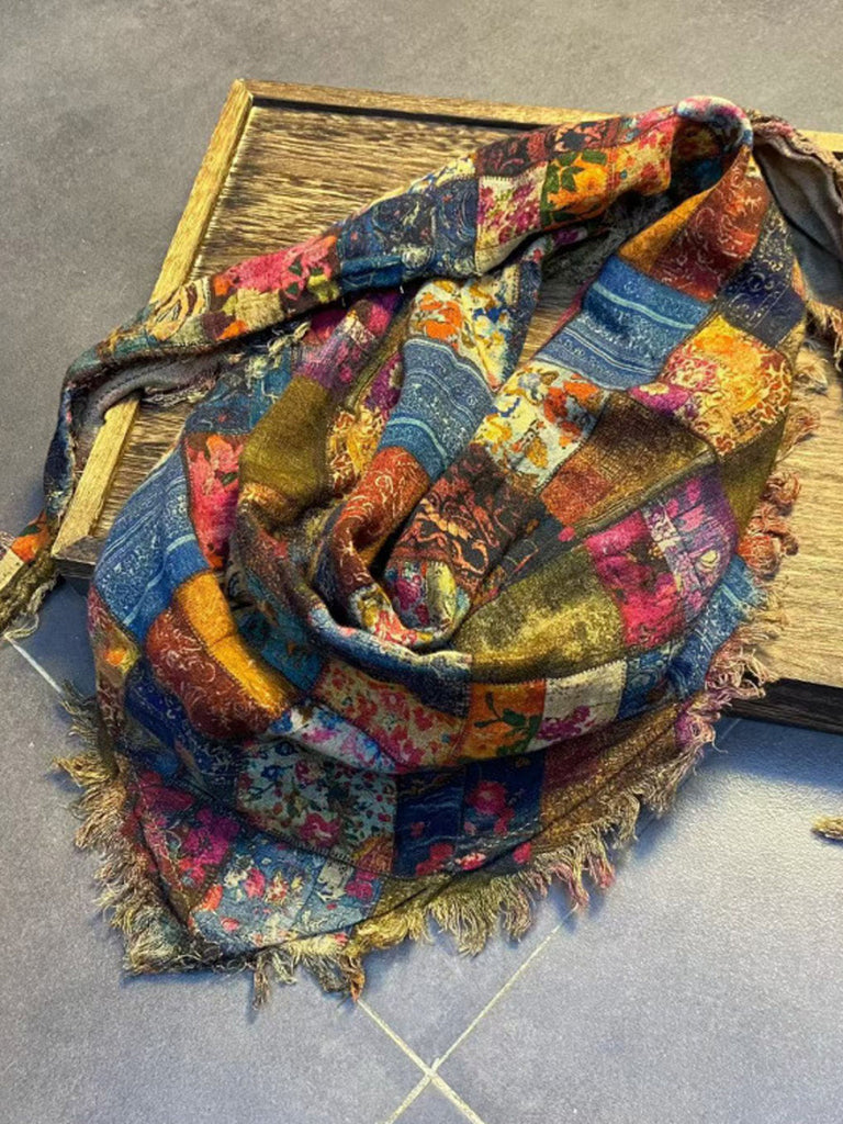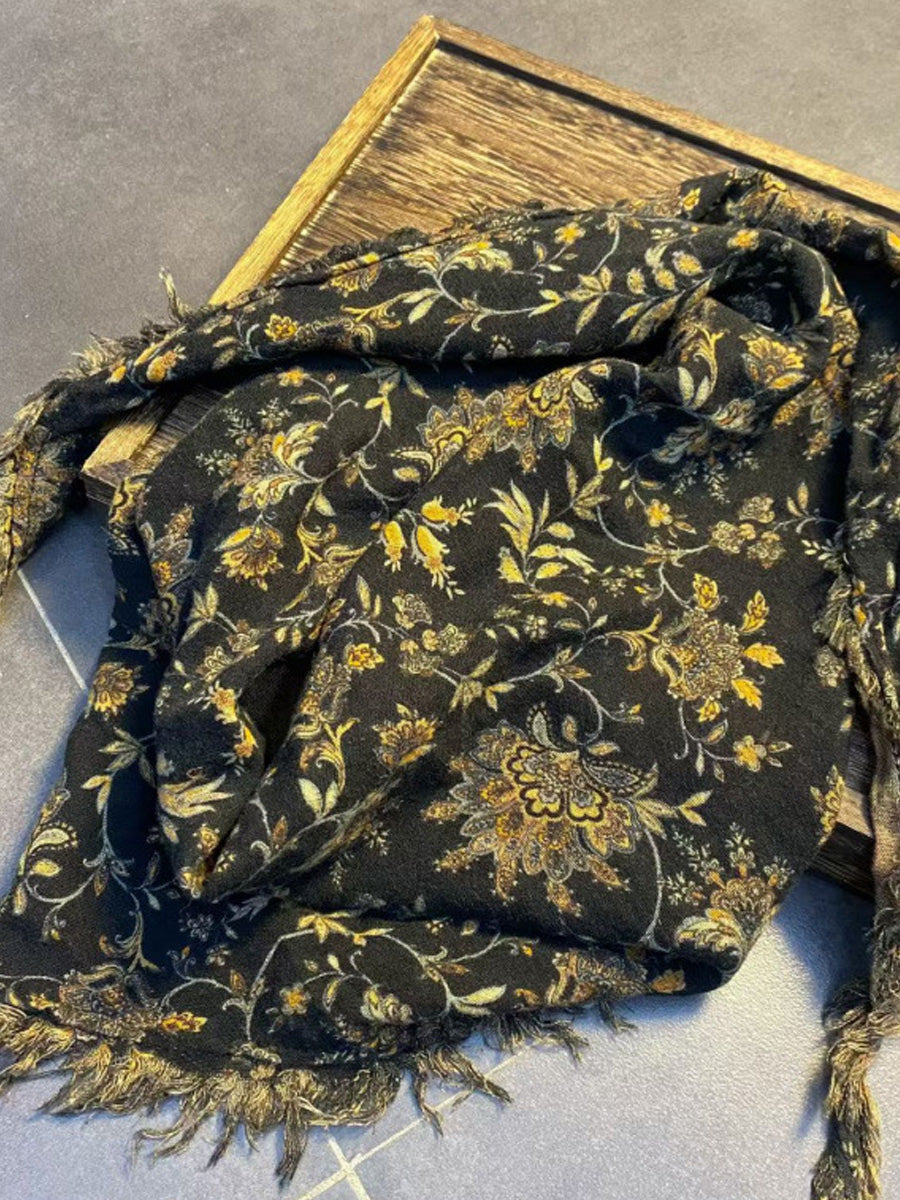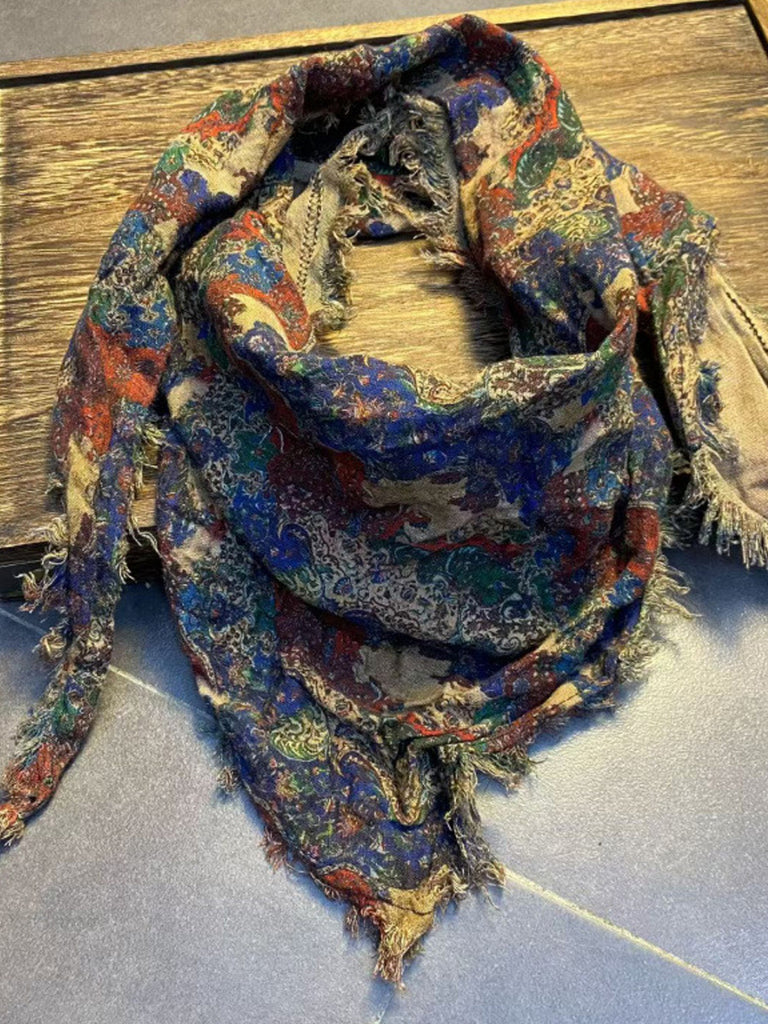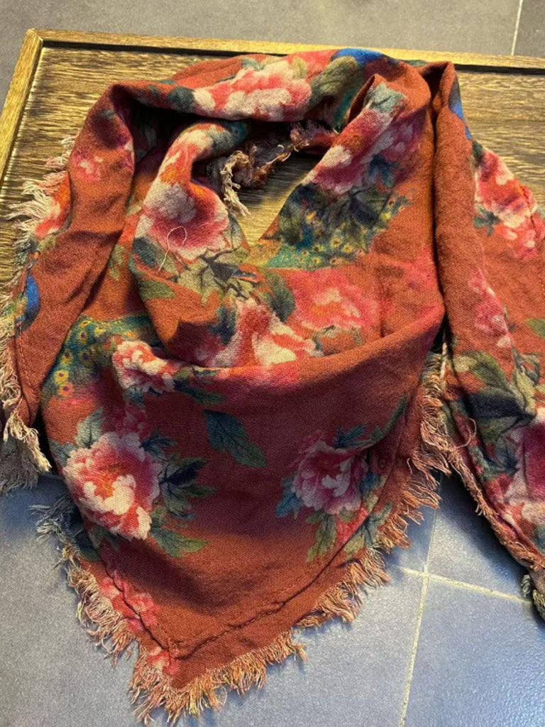 Dámský vintage květinový trojúhelníkový šátek s neopracovaným okrajem