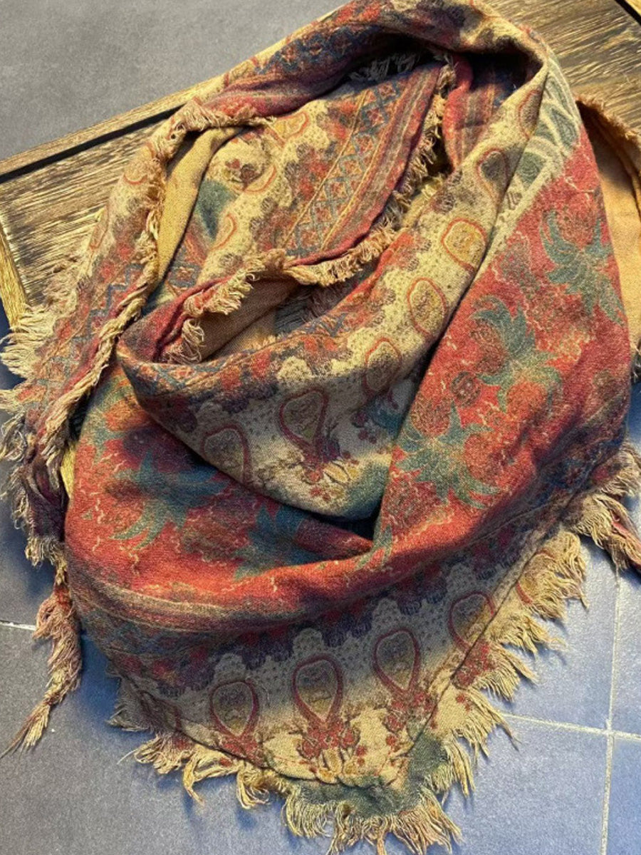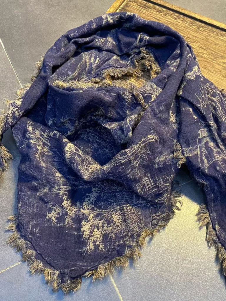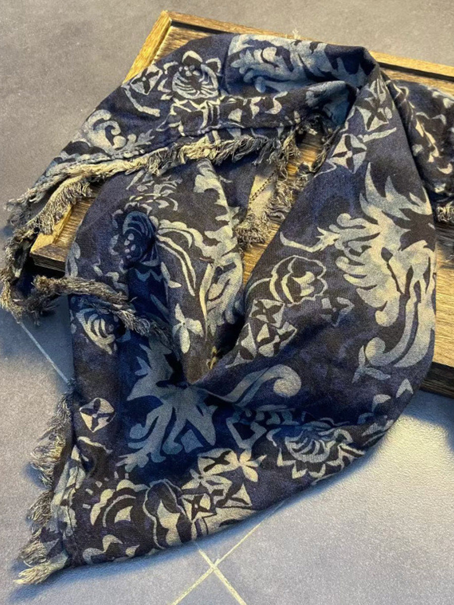 Dámský vintage květinový trojúhelníkový šátek s neopracovaným okrajem