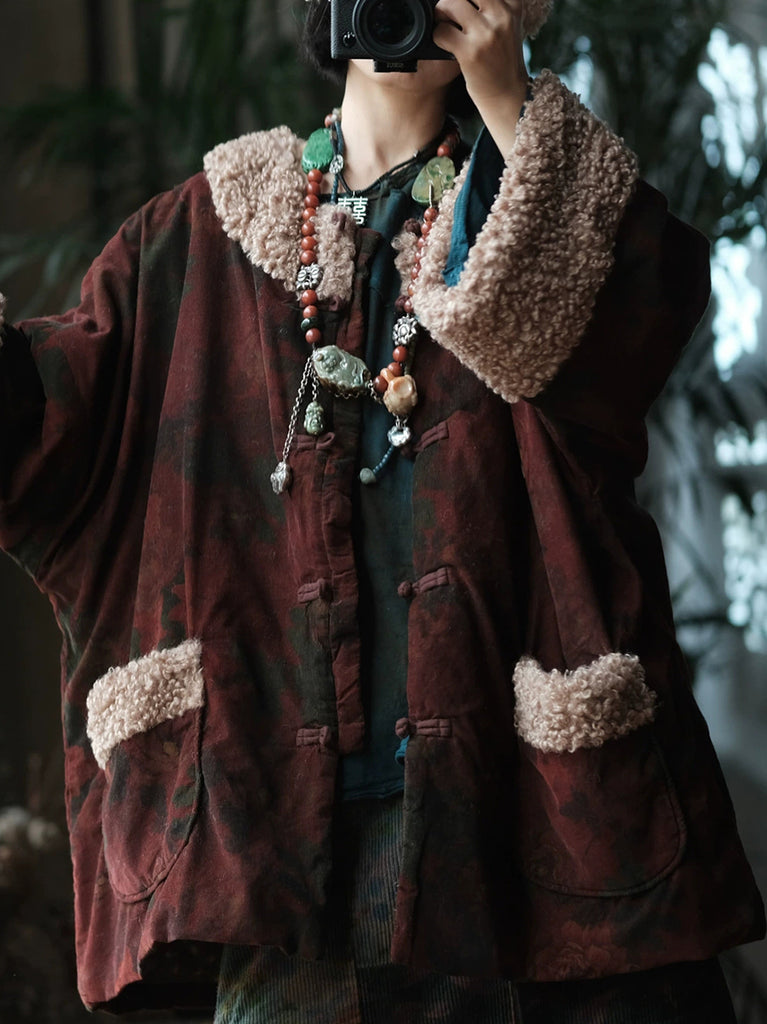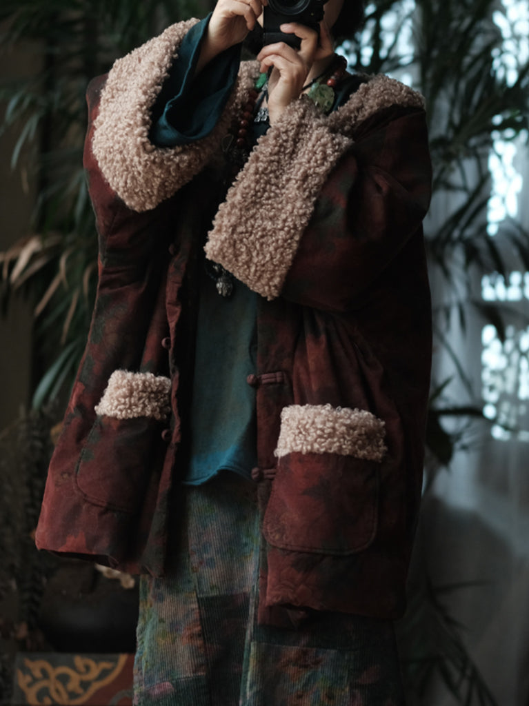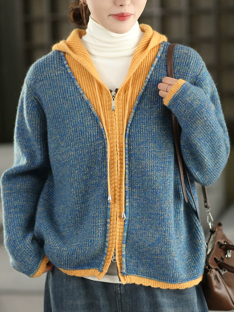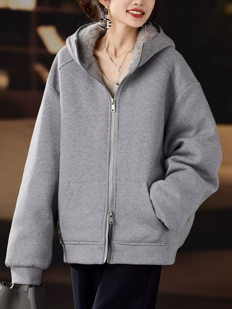 Dámský podzimní retro fleecový kabát s kapucí v čistých barvách