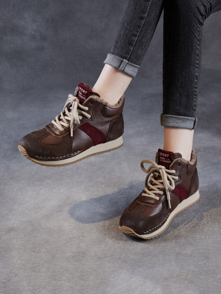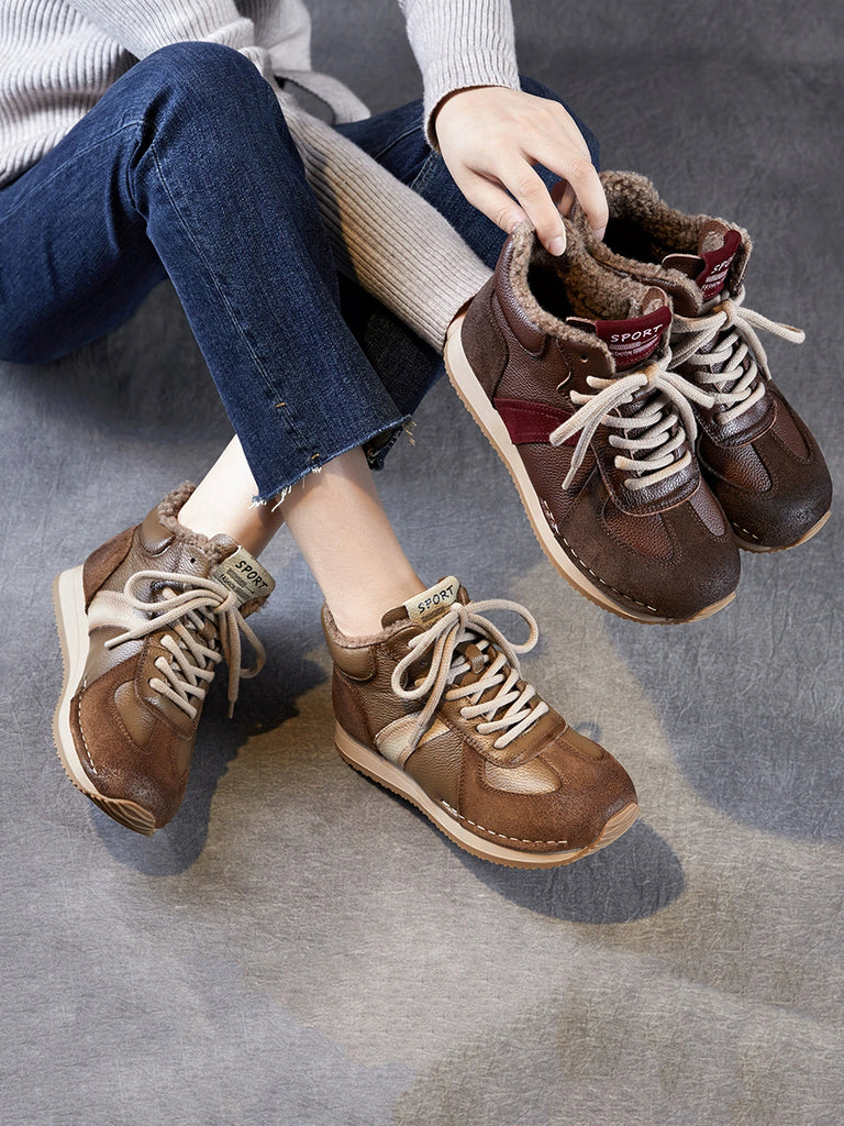 Dámské zimní kožené boty s barevnými bloky a fleecovou podšívkou