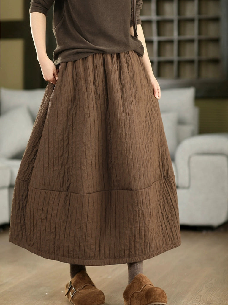 Dámská podzimní vintage čistě barevná polstrovaná sukně ve tvaru A