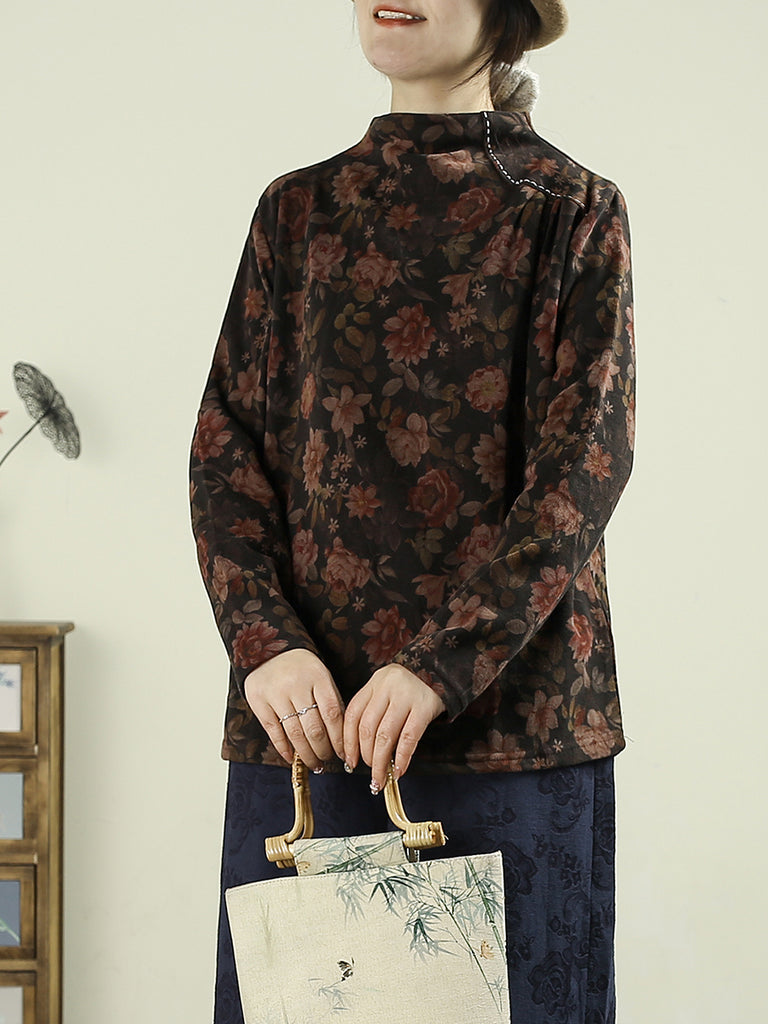 Dámská vintage podzimní květinová halenka s polovičními roláky