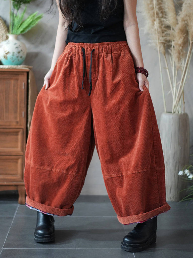 Dámské zimní retro manšestrové kalhoty s širokými nohavicemi v čistě barevných barvách