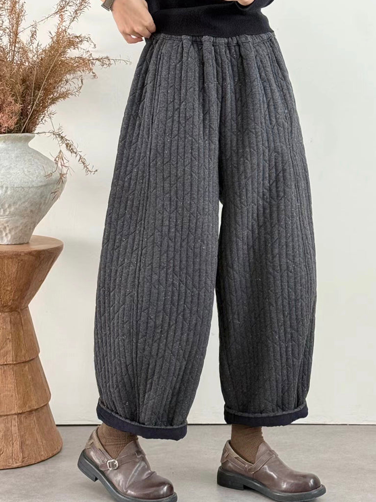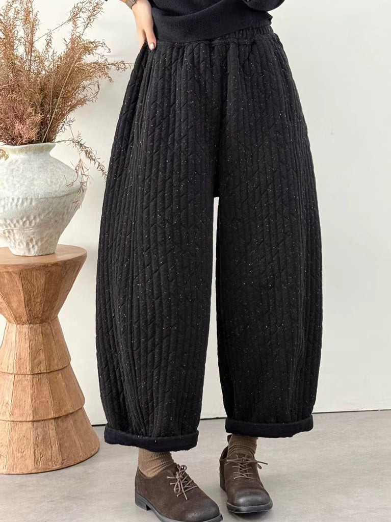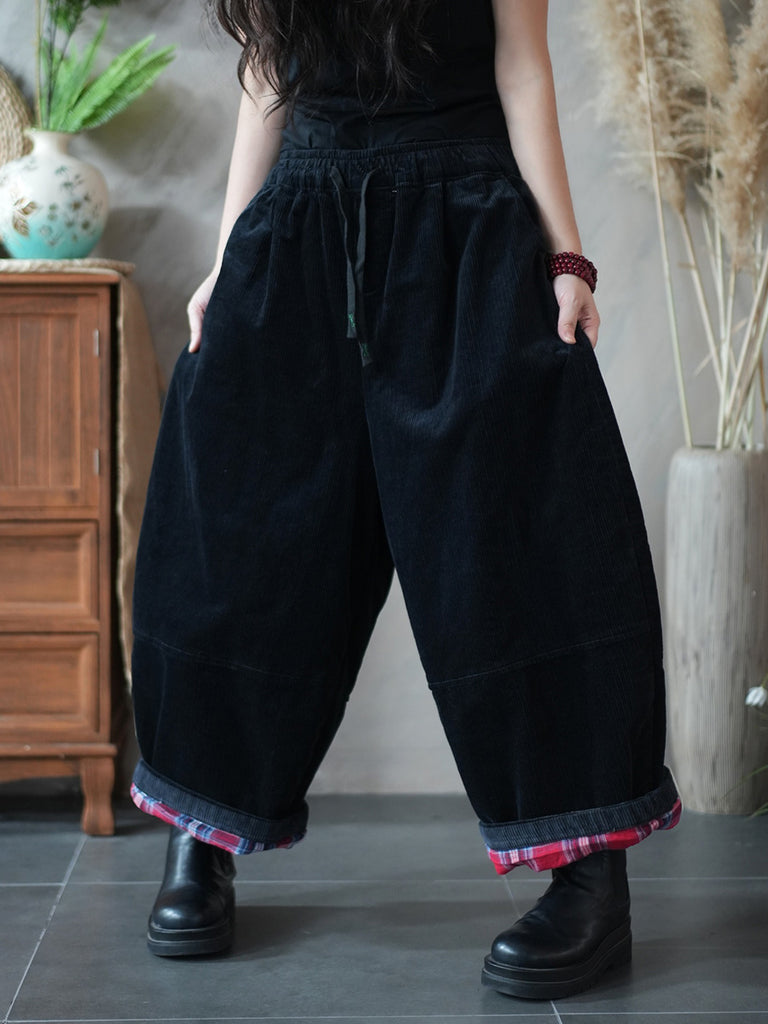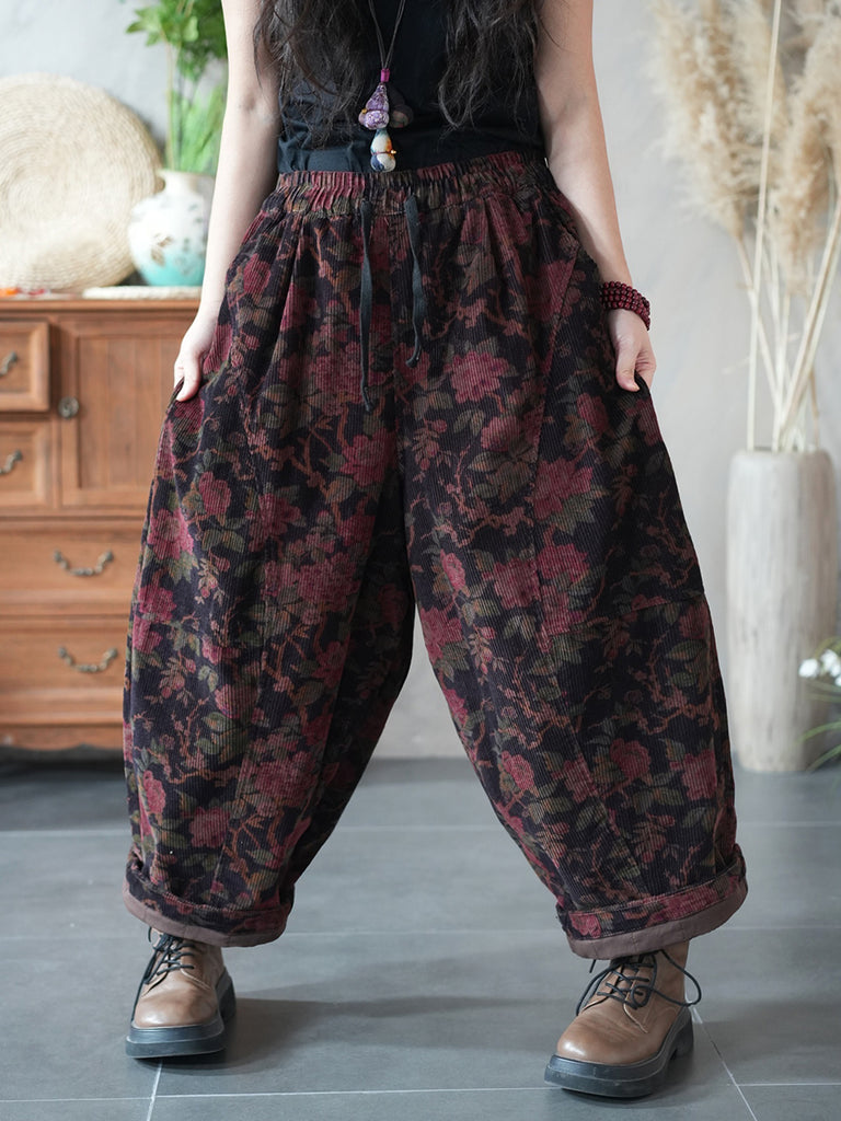 Dámské zimní retro květinové manšestrové polstrované harémové kalhoty