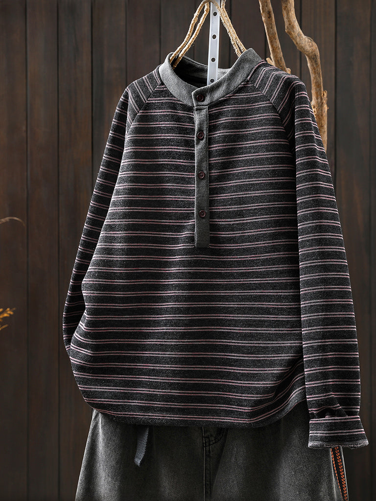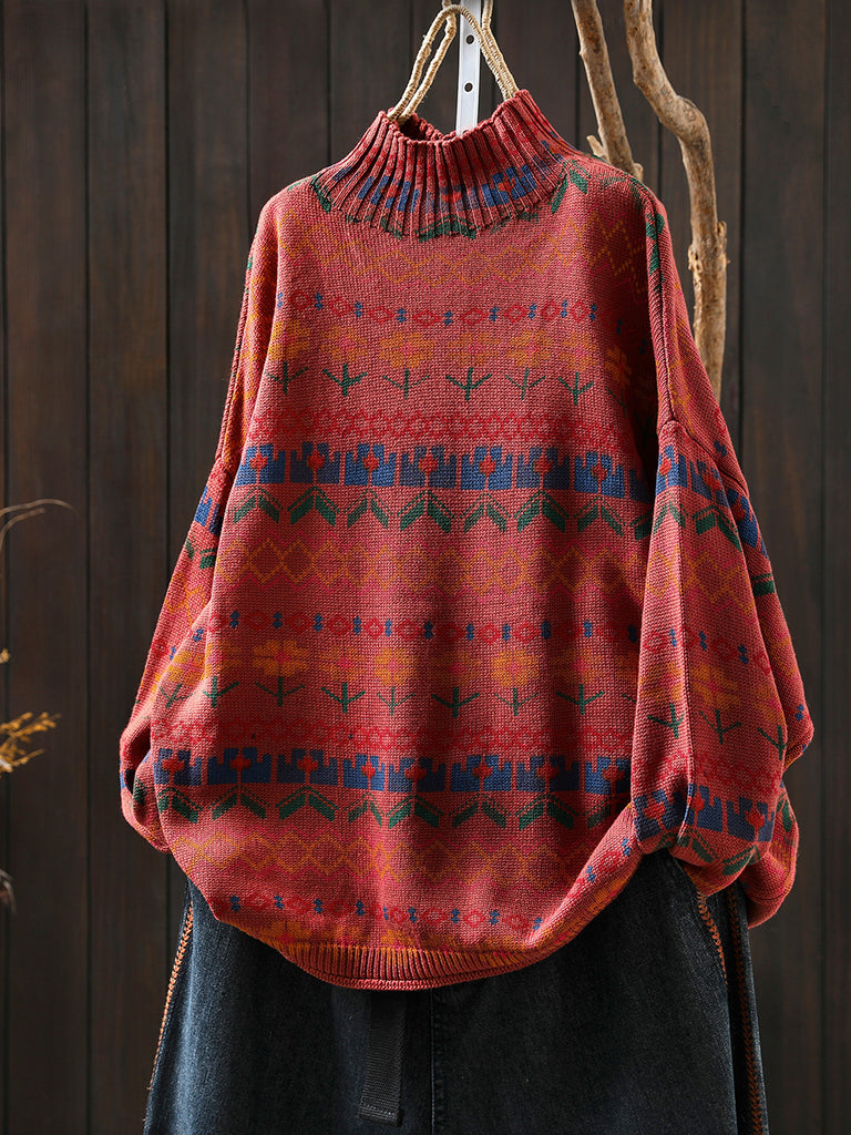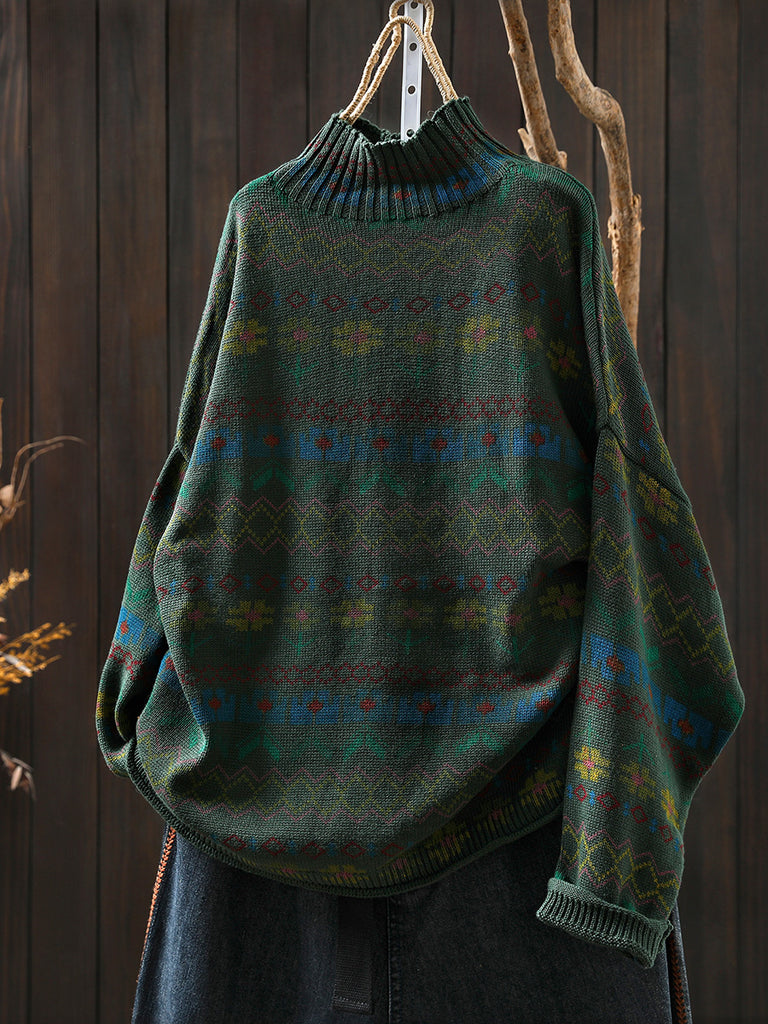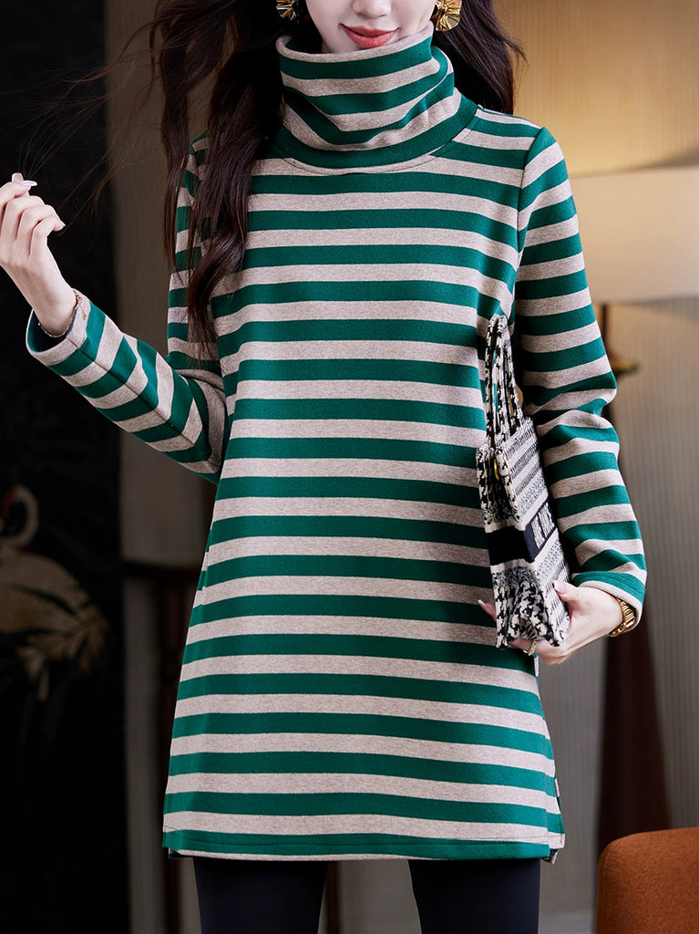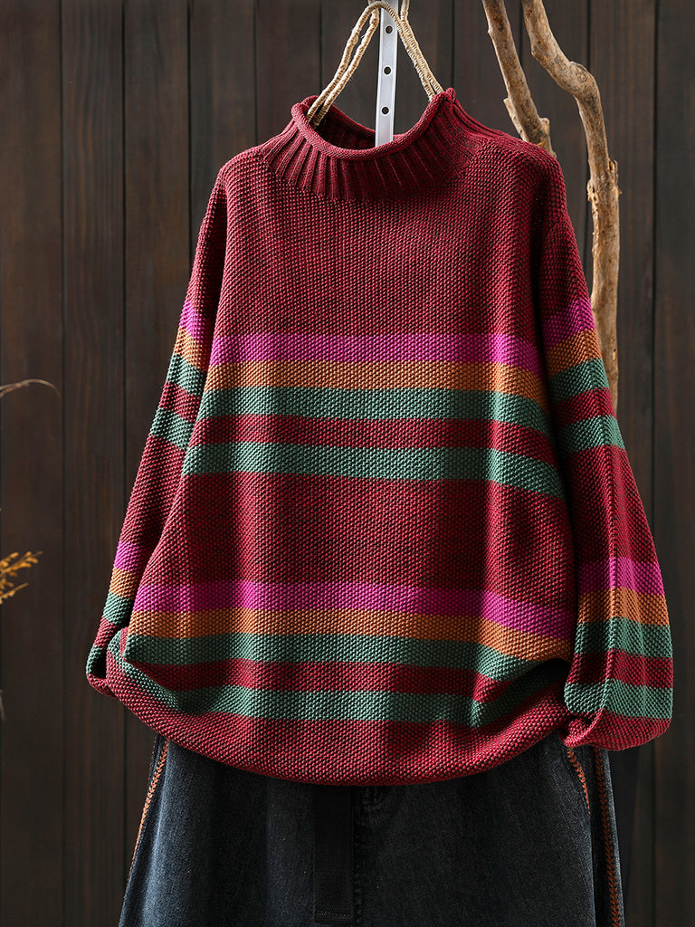 Dámský podzimní umělecký pruhovaný svetr s půlrolátkem