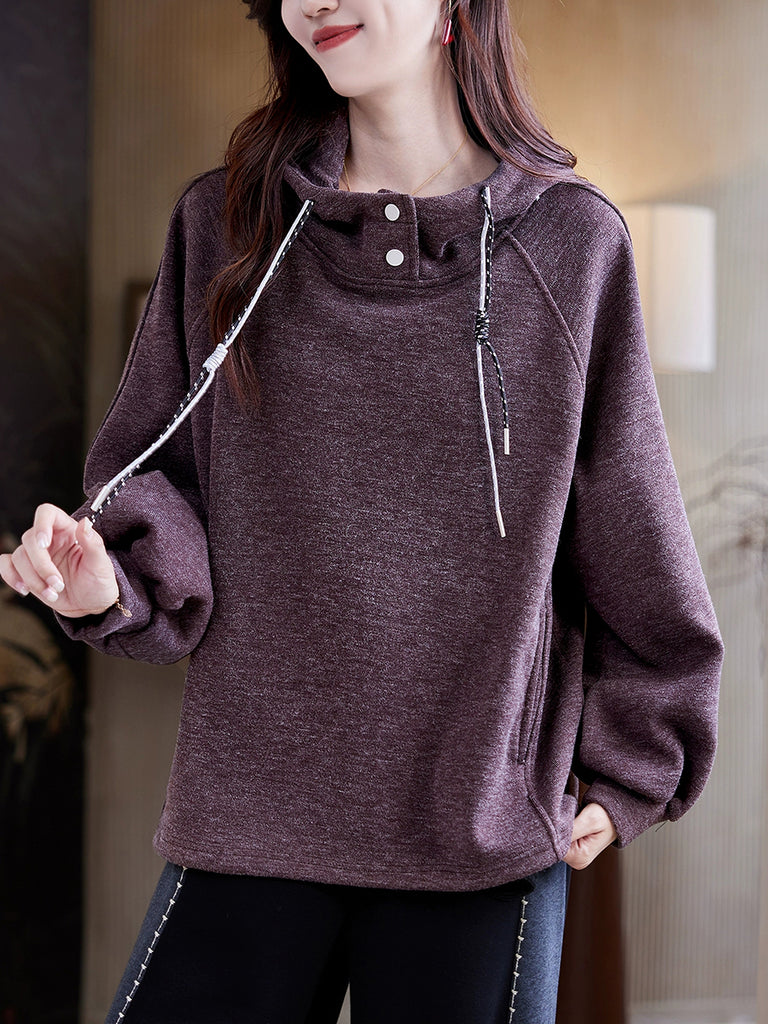 Dámská zimní ležérní mikina s kapucí v čistě barevných barvách a fleecovou podšívkou