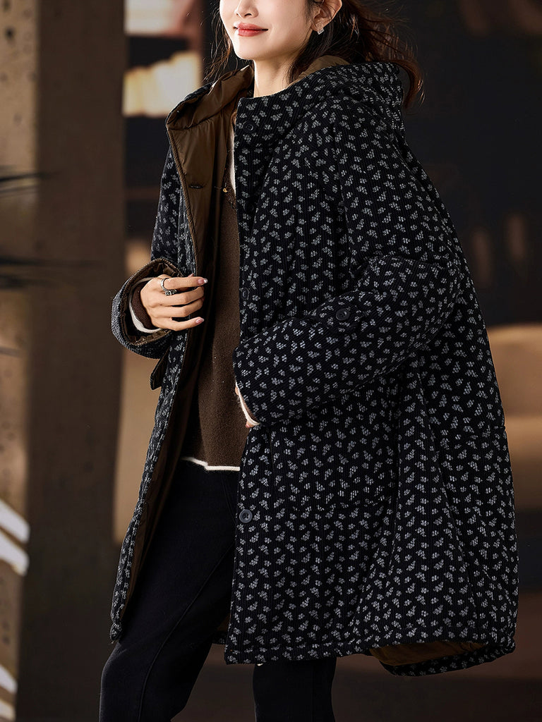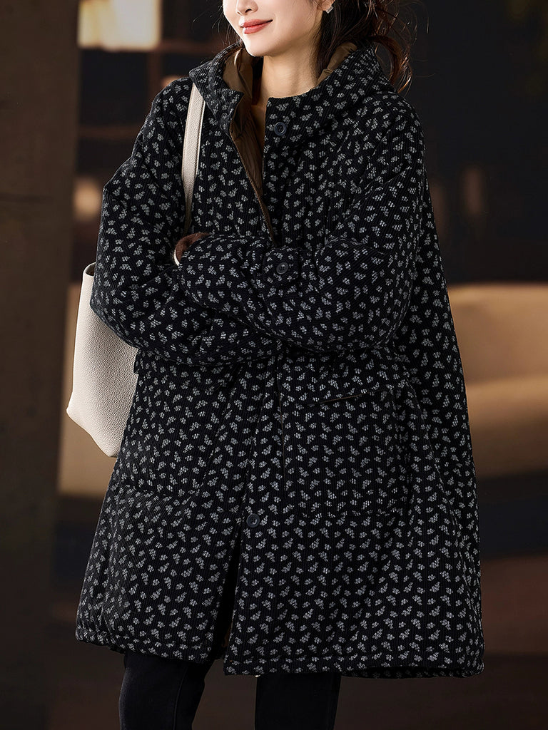 Dámský zimní ležérní květinový prošívaný kabát s kapucí