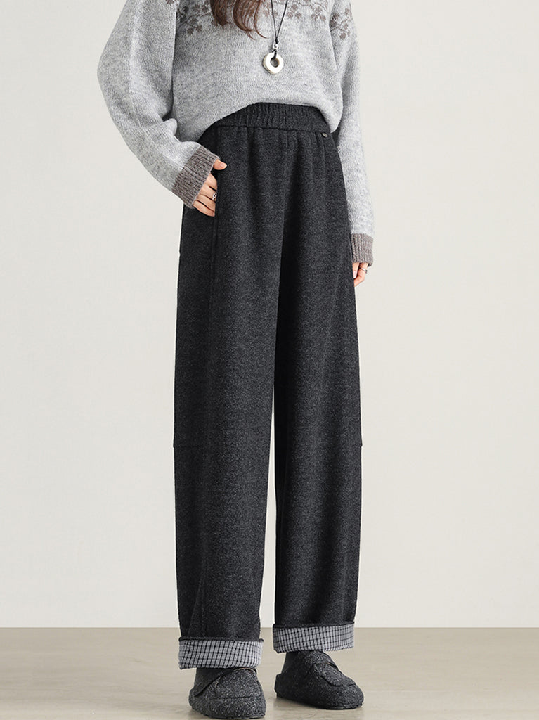 Dámské zimní ležérní čisté barvy s fleecovou podšívkou rovné kalhoty