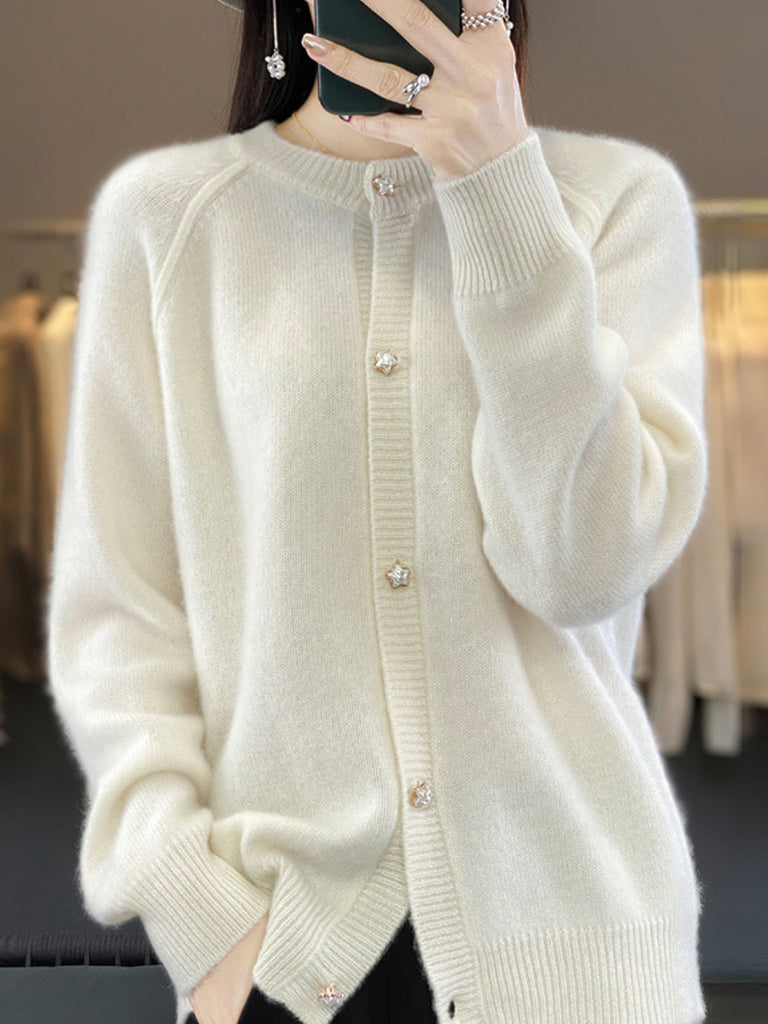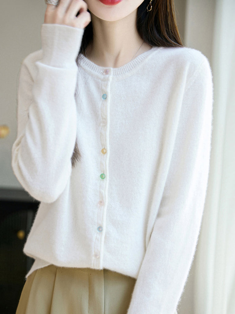 Dámský podzimní ležérní vlněný svetr s výstřihem do O-neck v čistých barvách