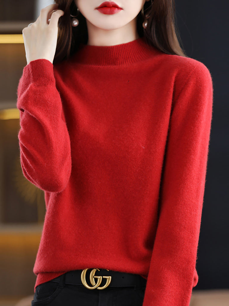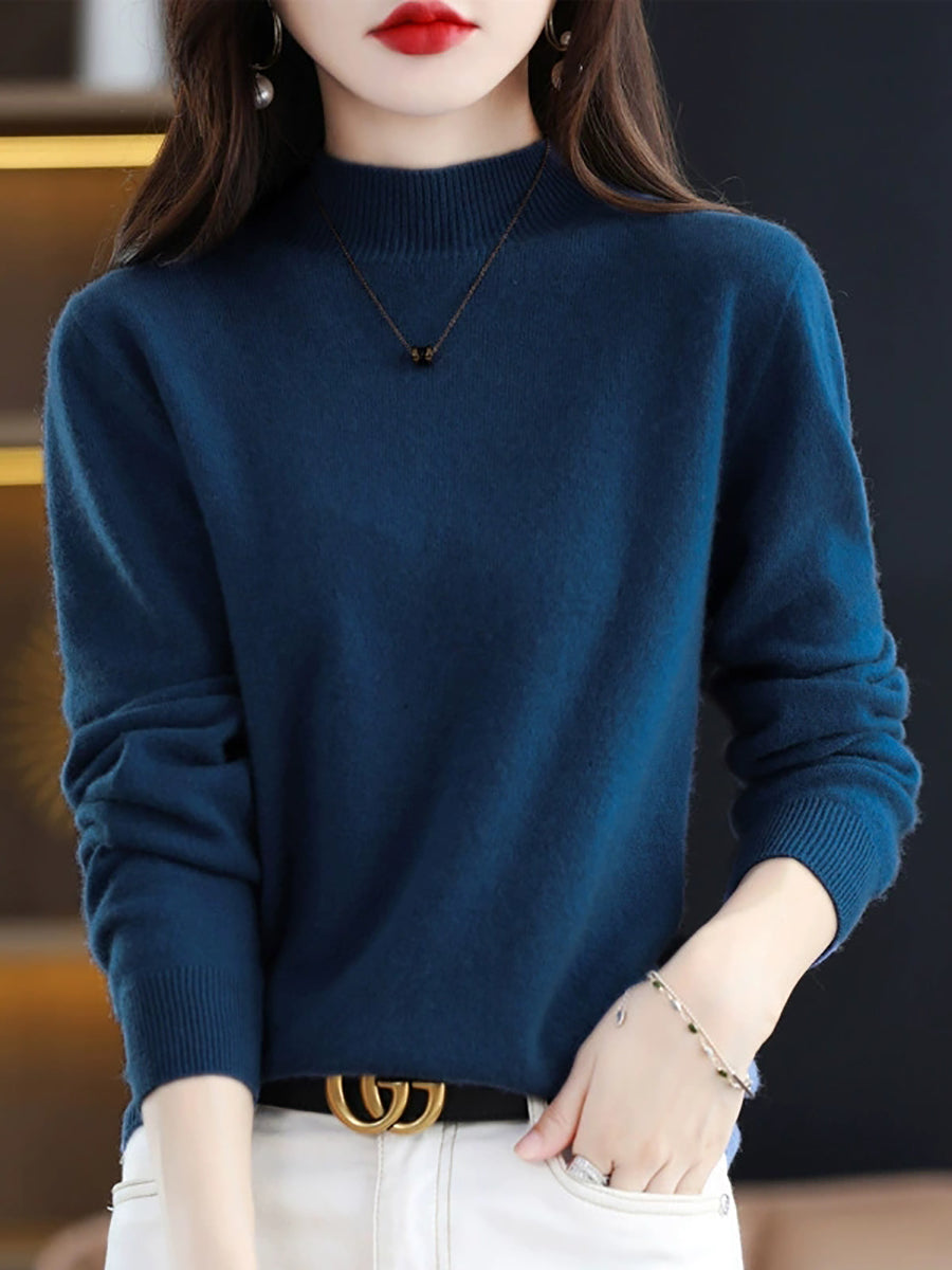 Dámský zimní svetr s polovičním rolákem v čistých barvách