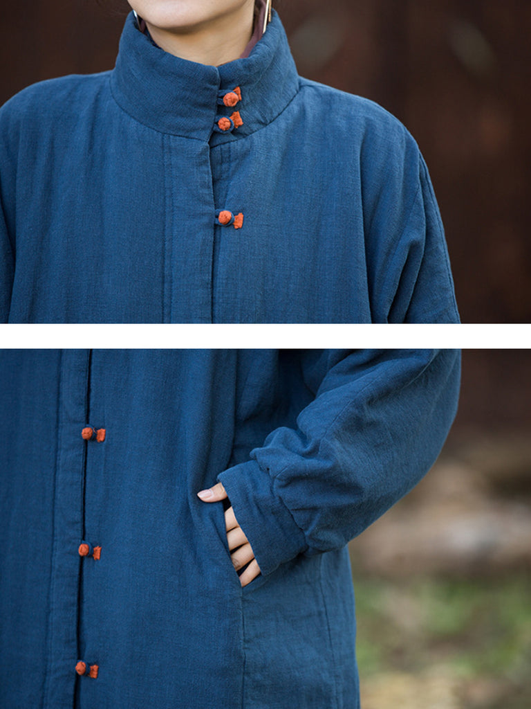 Dámský zimní čistě barevný stojací límec s polstrovaným límcem