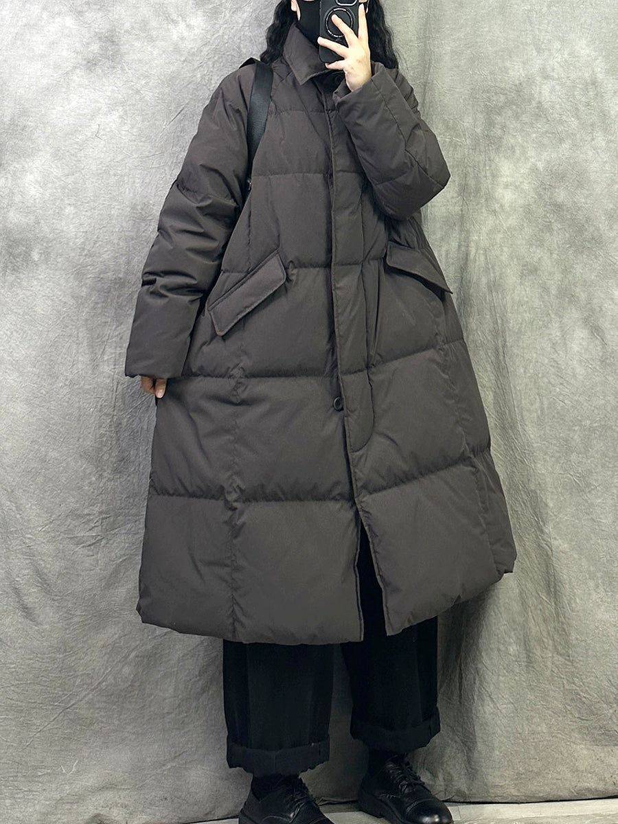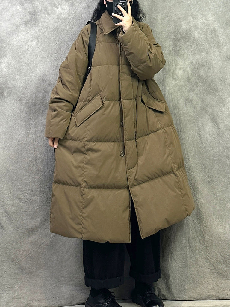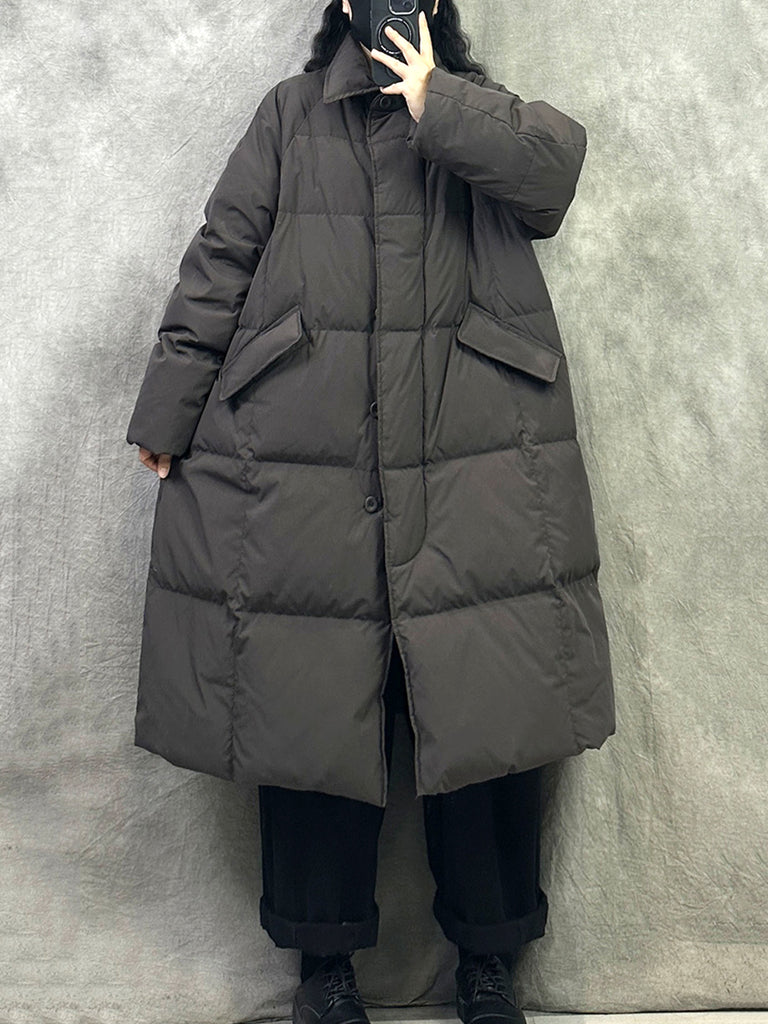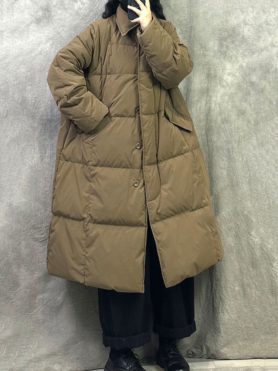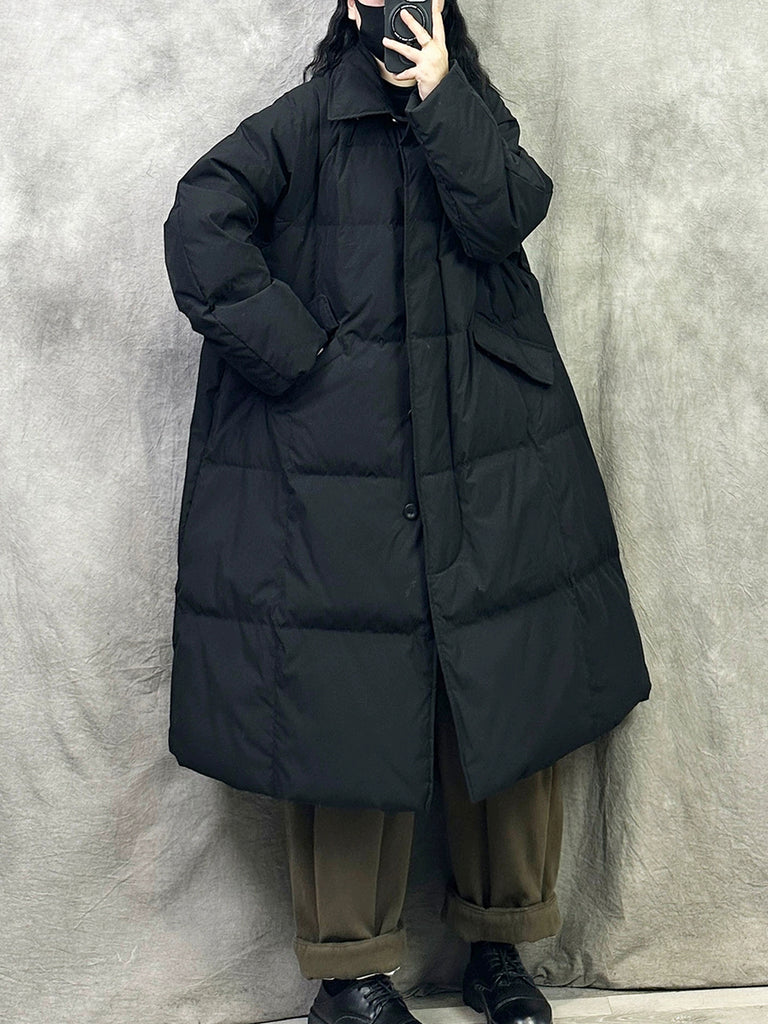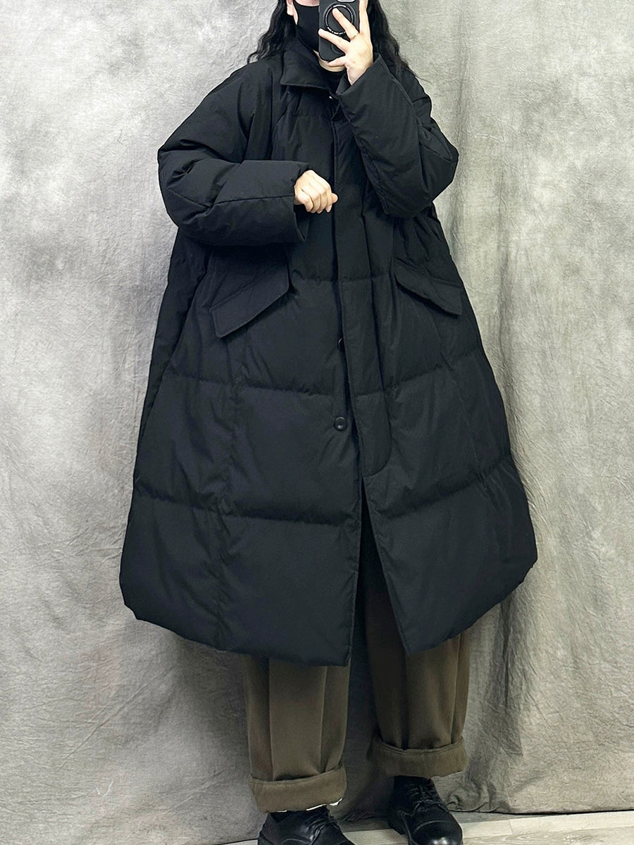 Dámský zimní čistě barevný kabát s odkládacím límcem