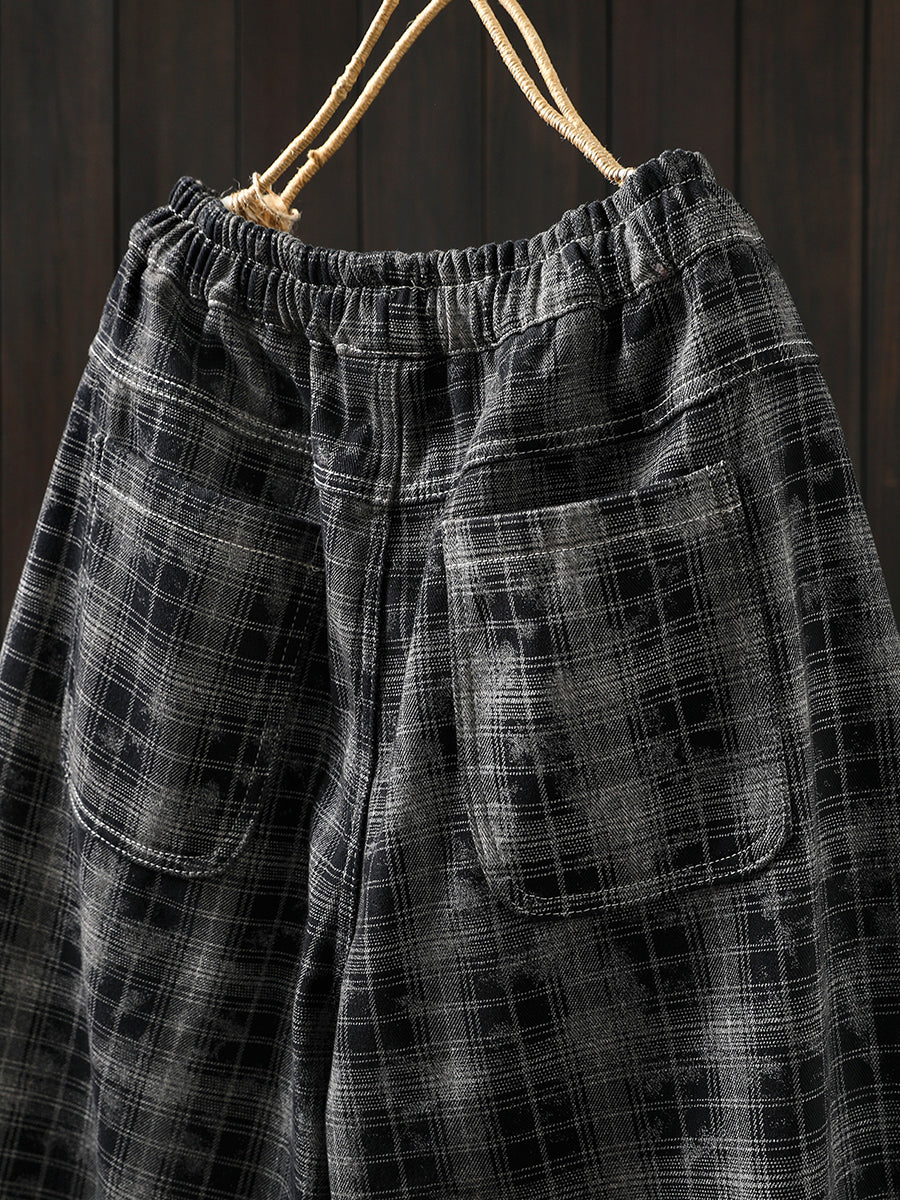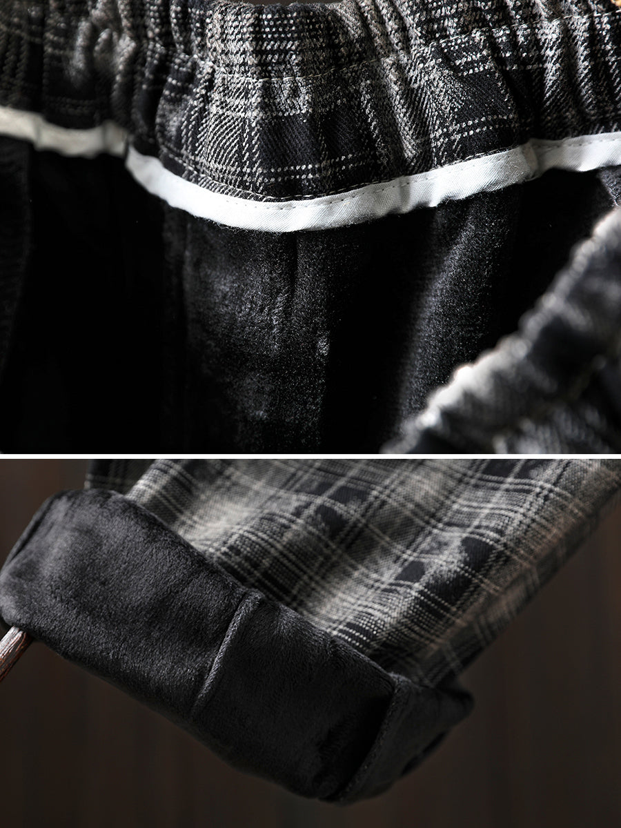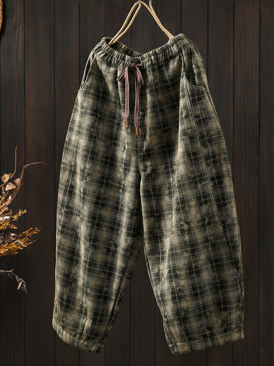 Dámské zimní retro kostkované harémové kalhoty s fleecovou podšívkou