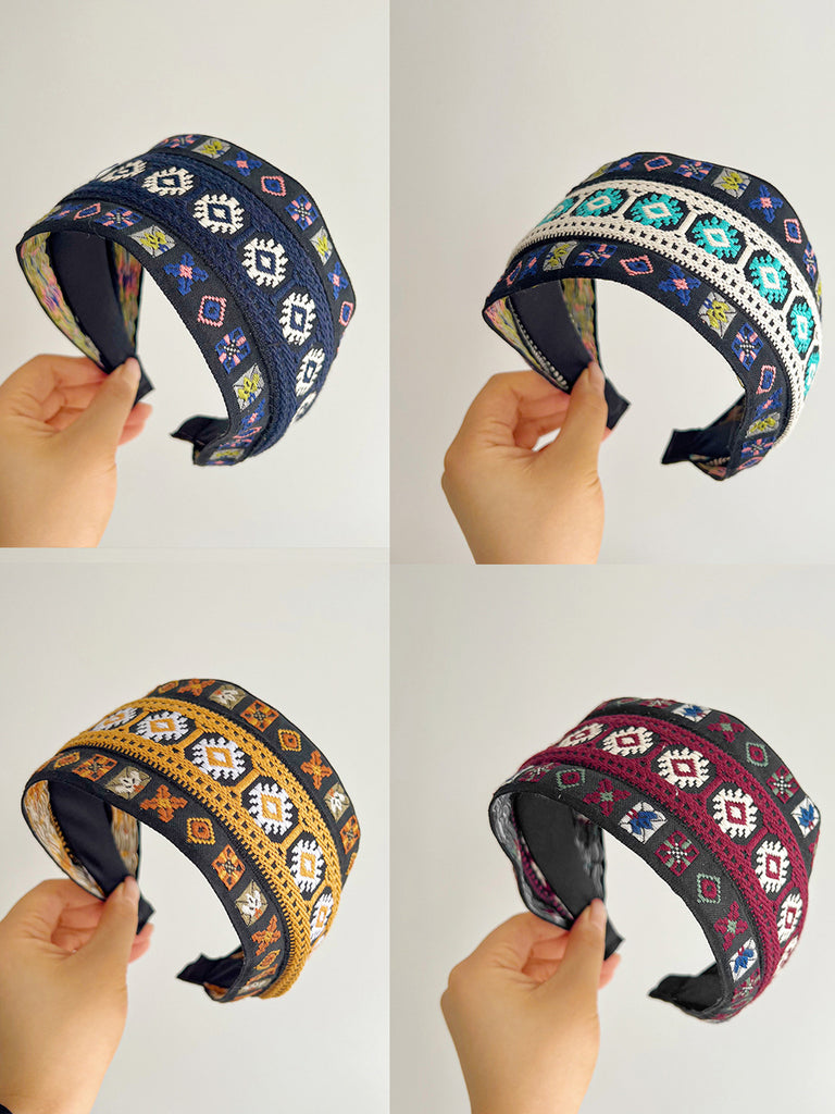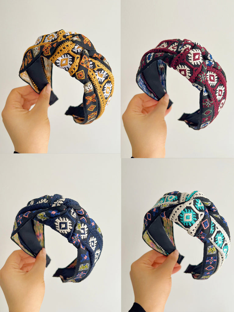 Zimní pletená široká čelenka s uměleckým květinovým vzorem, 4 kusy