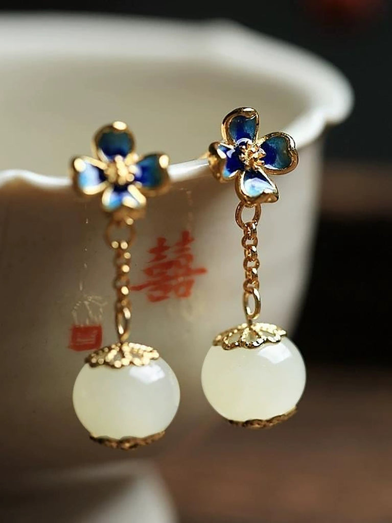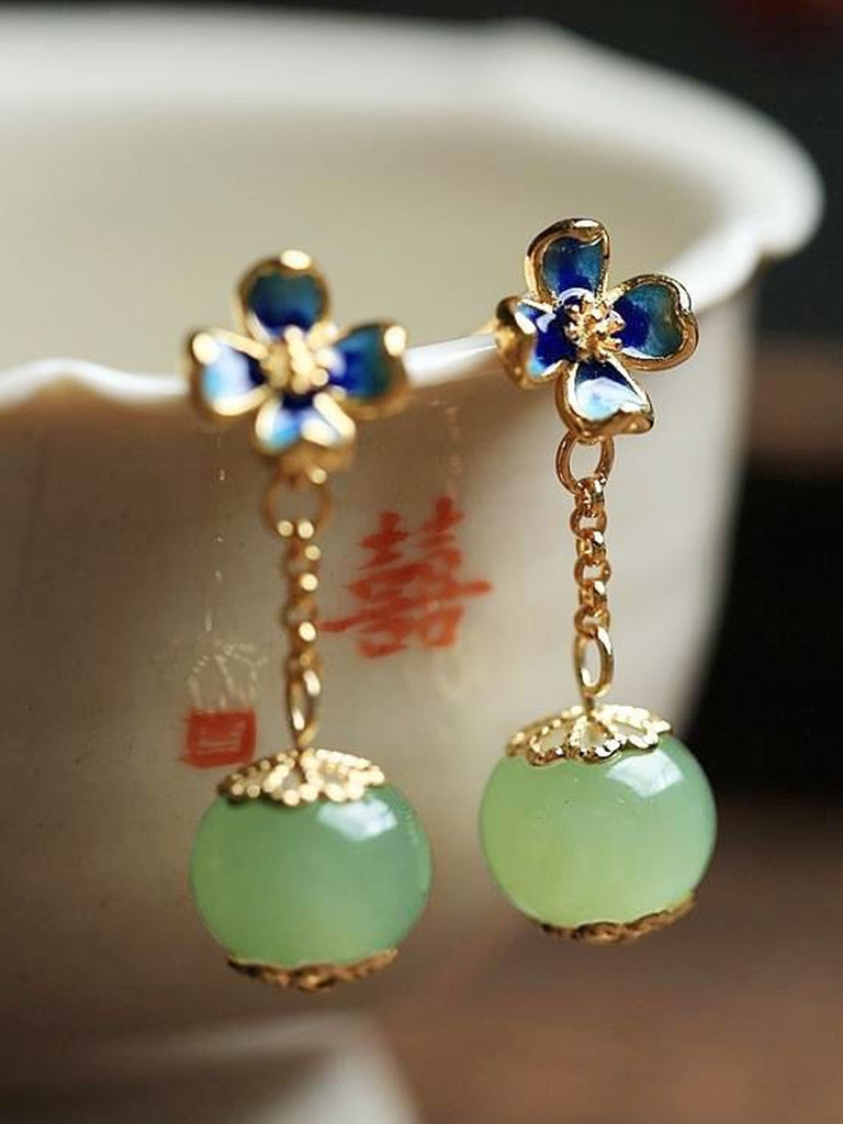 Dámské vintage slitinové kloisonne nefritové náušnice