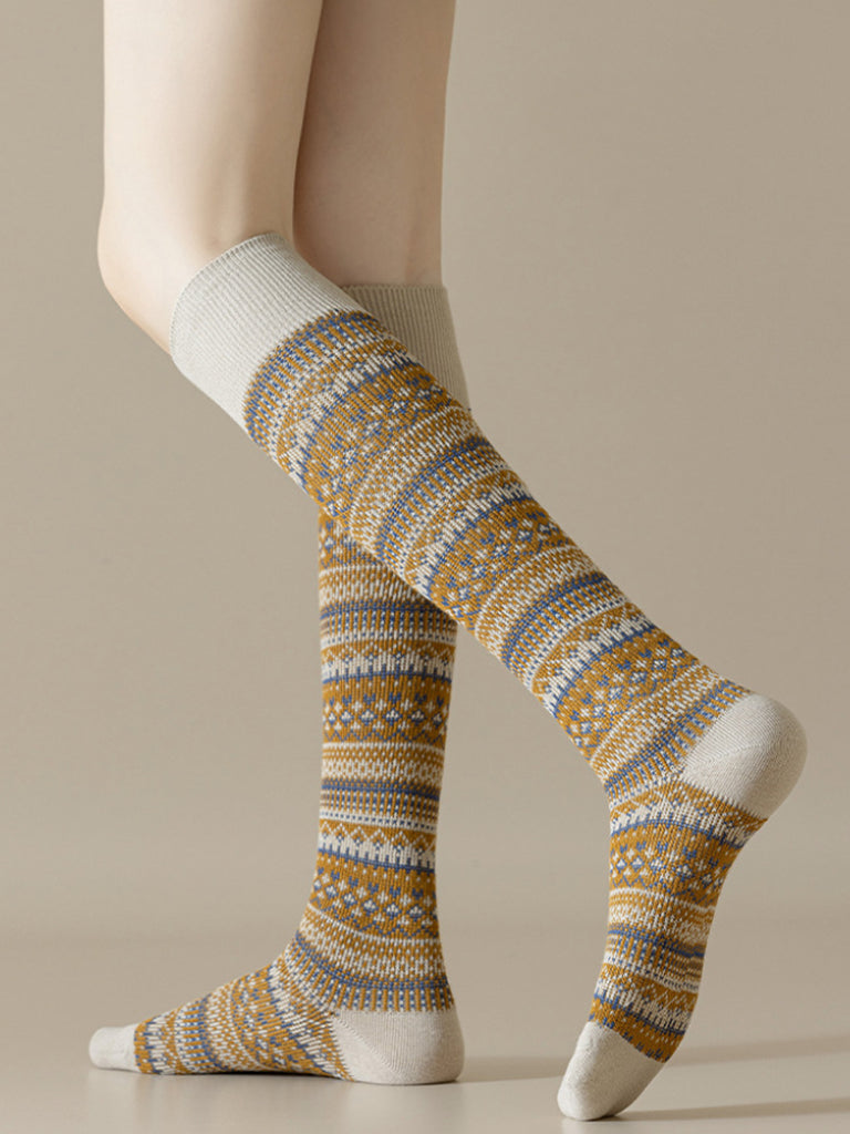 5 párů dámských zimních bavlněných ponožek s vintage pruhy