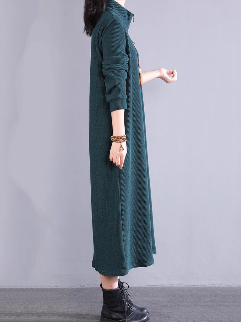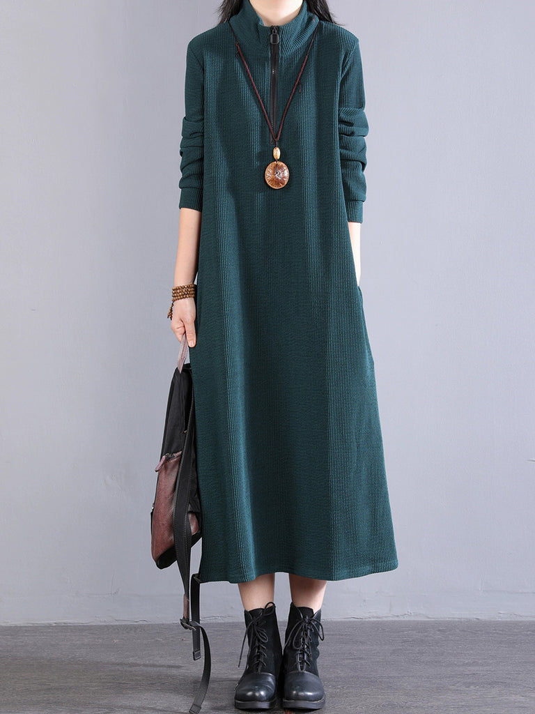Dámské podzimní šaty s límcem a stojáčkem, čisté barvy, 100% bavlna