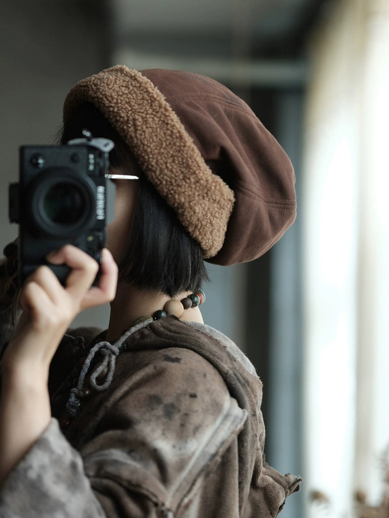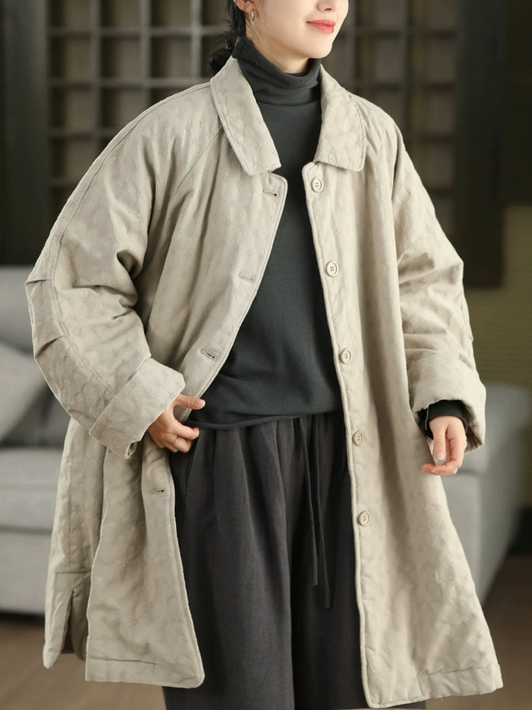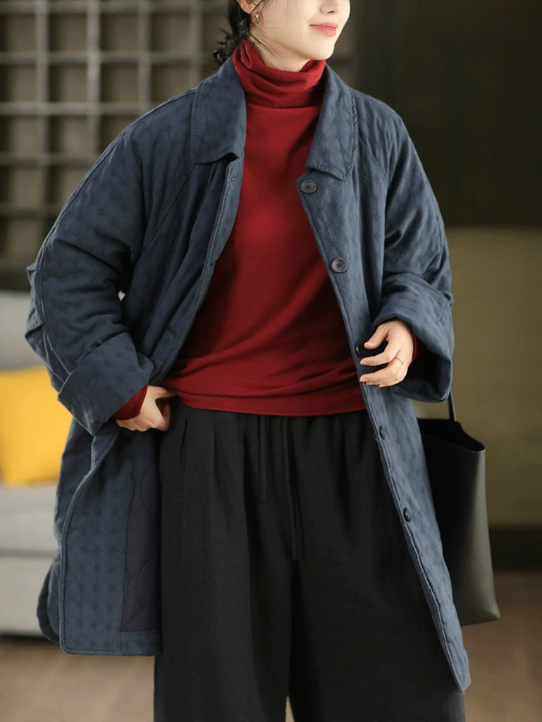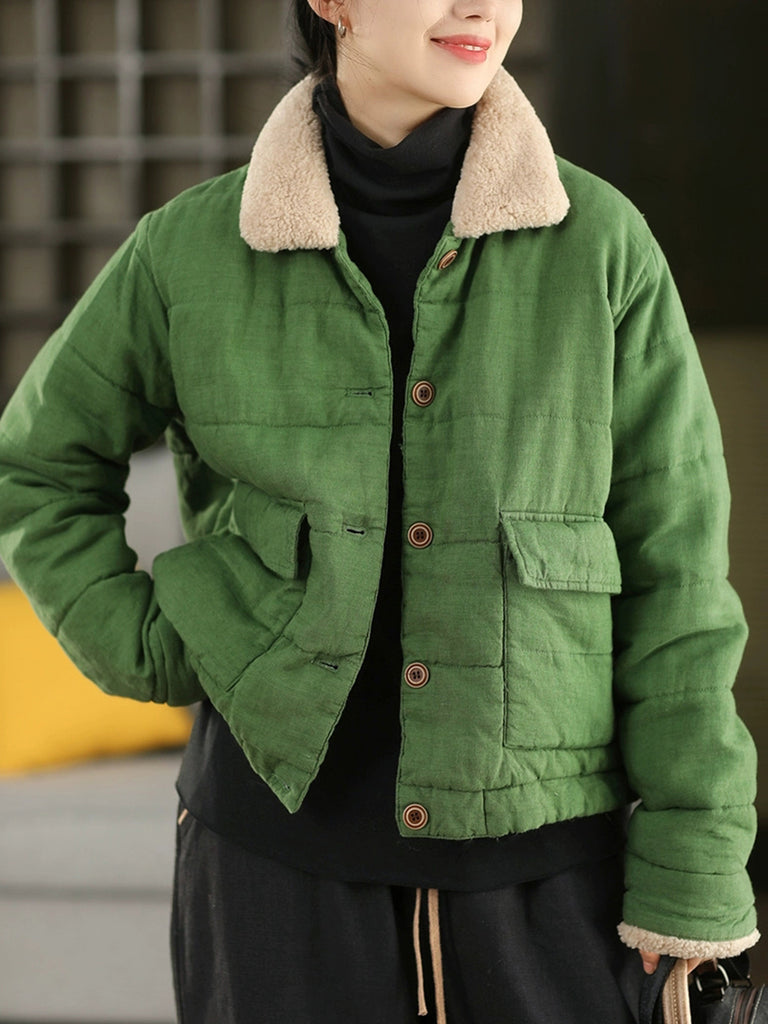 Dámský zimní retro prošívaný kabát ze 100% lněného fleecu