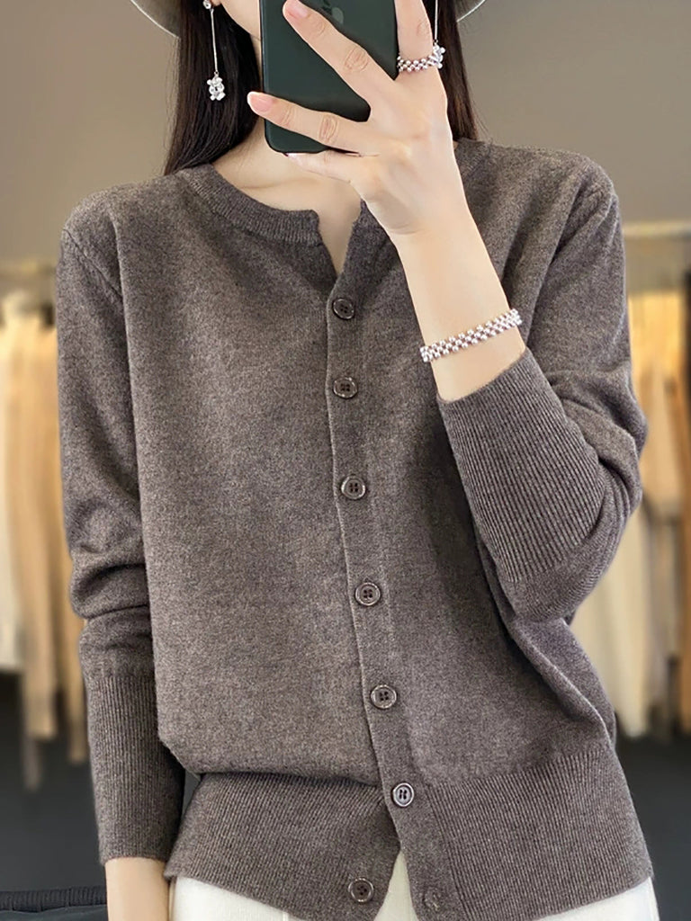 Dámský zimní ležérní pletený svetr s čistými barvami