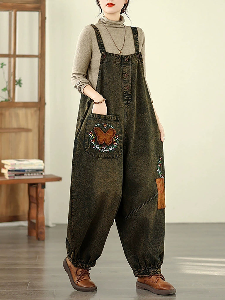 Dámské vintage patchworkové bavlněné volné džínové overaly