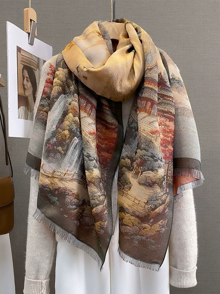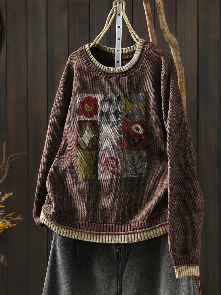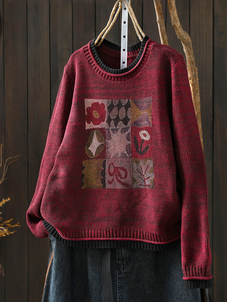 Dámský podzimní etnický žakárový svetr s výstřihem do O-neck