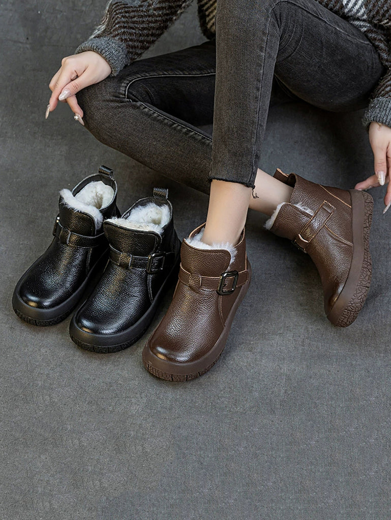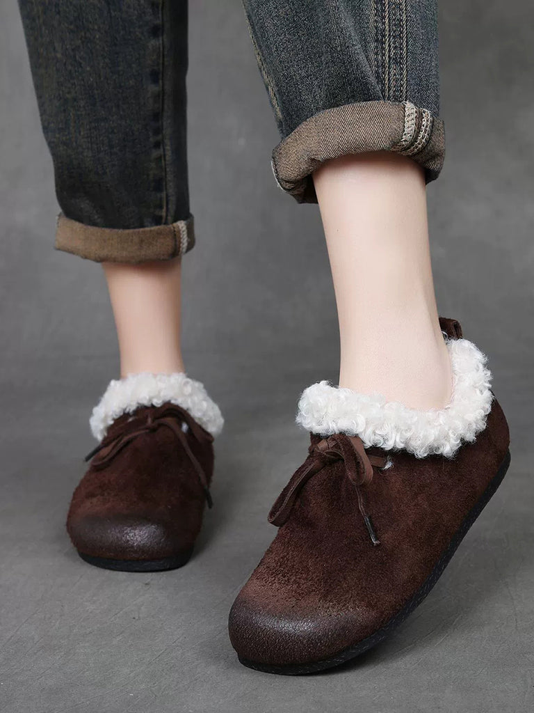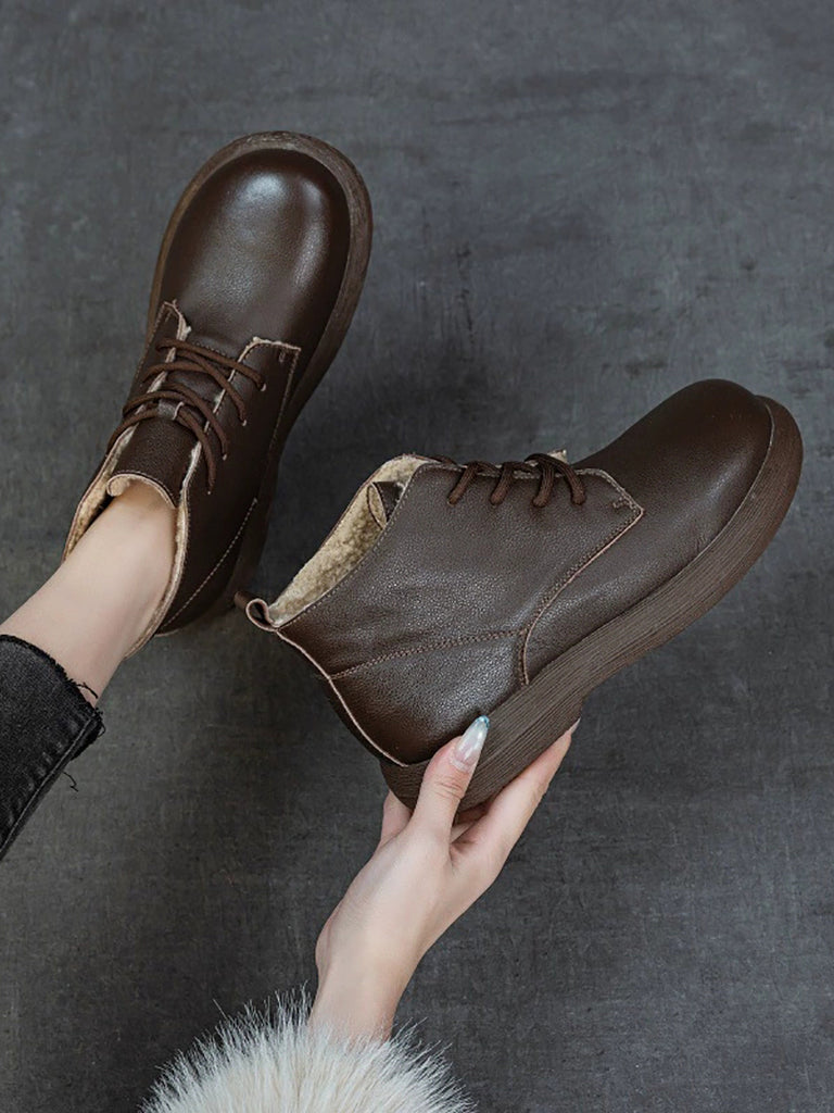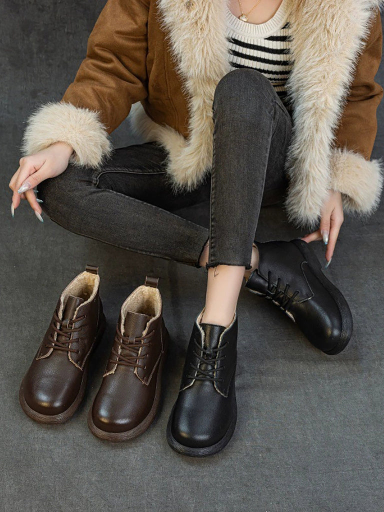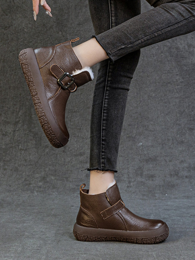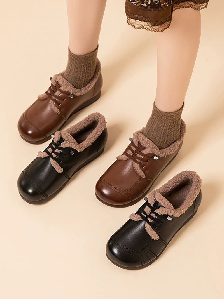 Dámské vintage boty z pravé kůže s fleecovou podšívkou