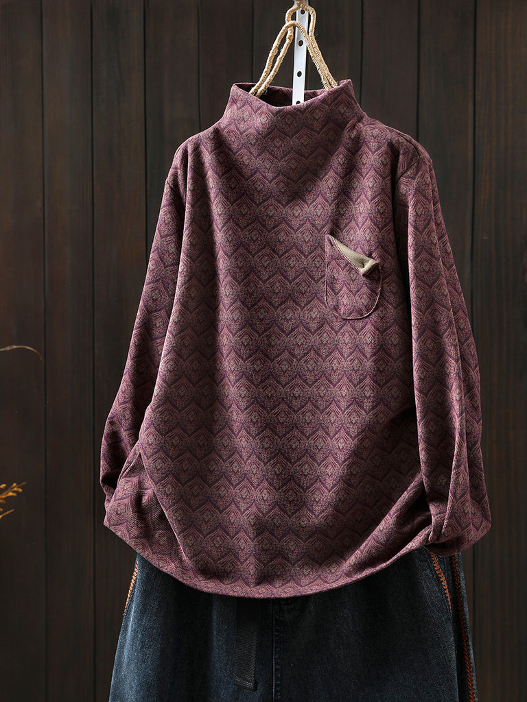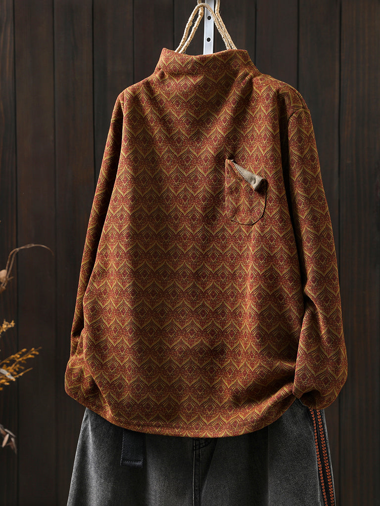 Dámská zimní halenka s vintage potiskem a rolákovým výstřihem