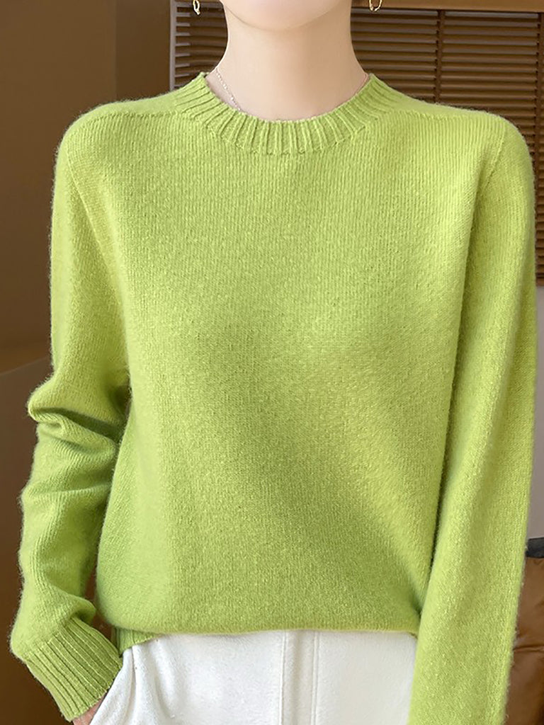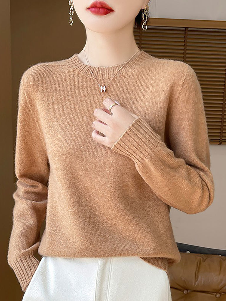 Dámský zimní ležérní pletený svetr s výstřihem do O-neck v čistých barvách