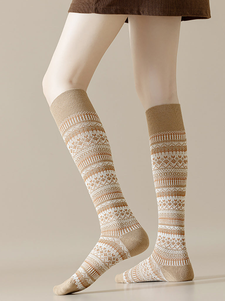 5 párů dámských zimních bavlněných dlouhých ponožek s pruhy