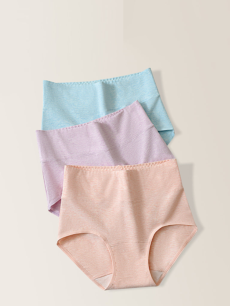 5dílné dámské bavlněné spodní prádlo s vysokým pasem v čistých barvách