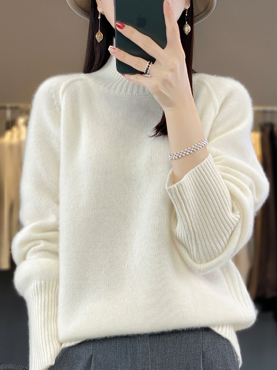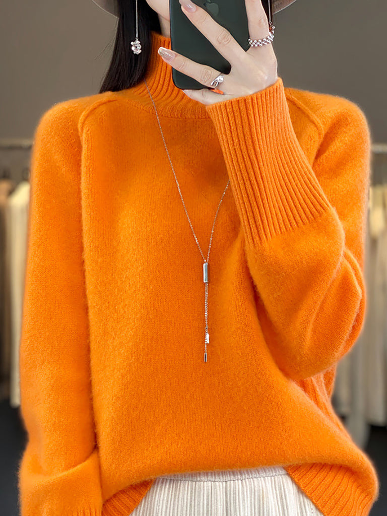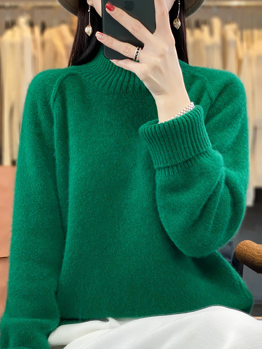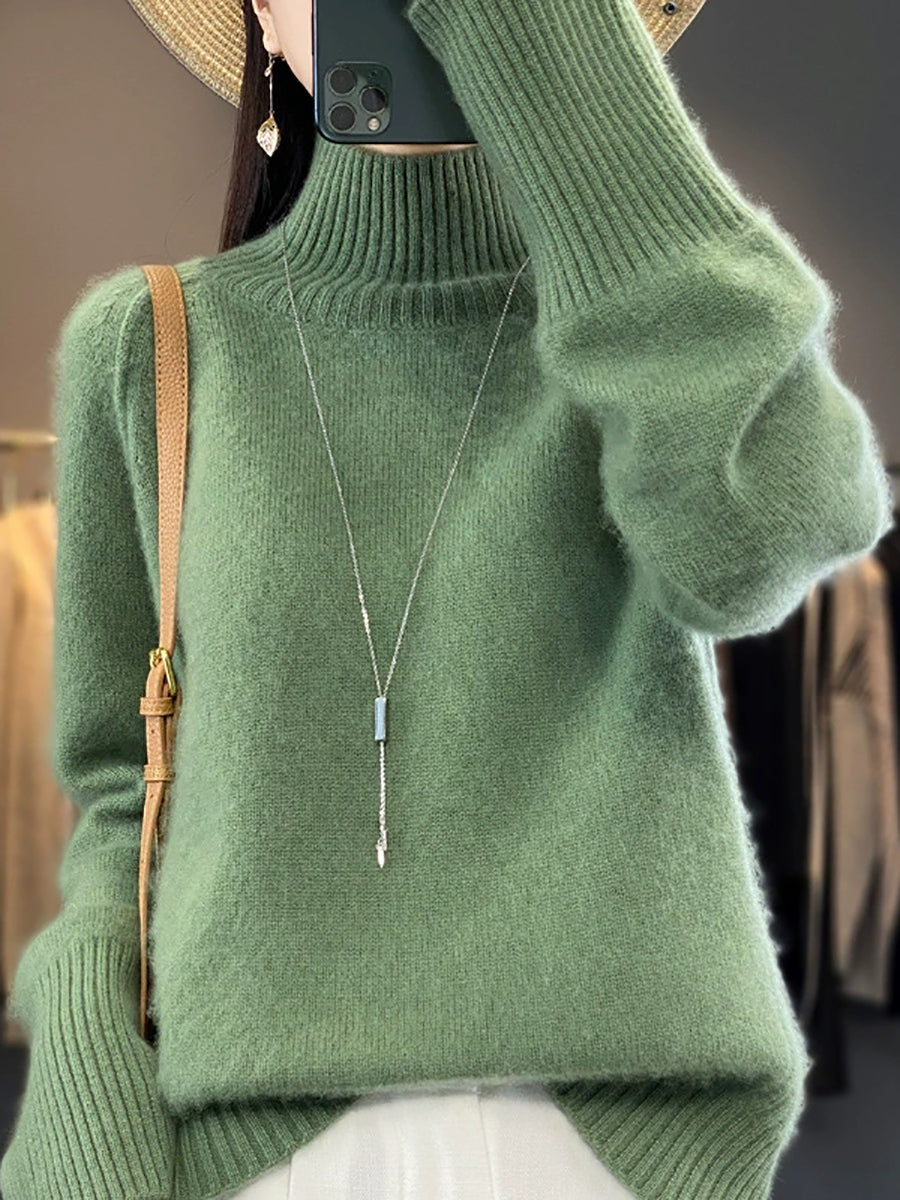 Dámský zimní ležérní pletený svetr s čistými barvami