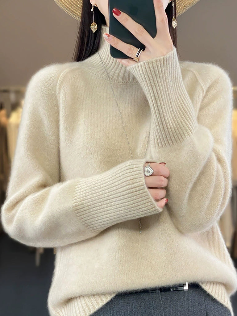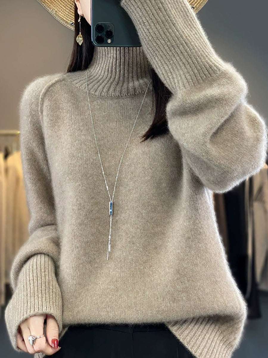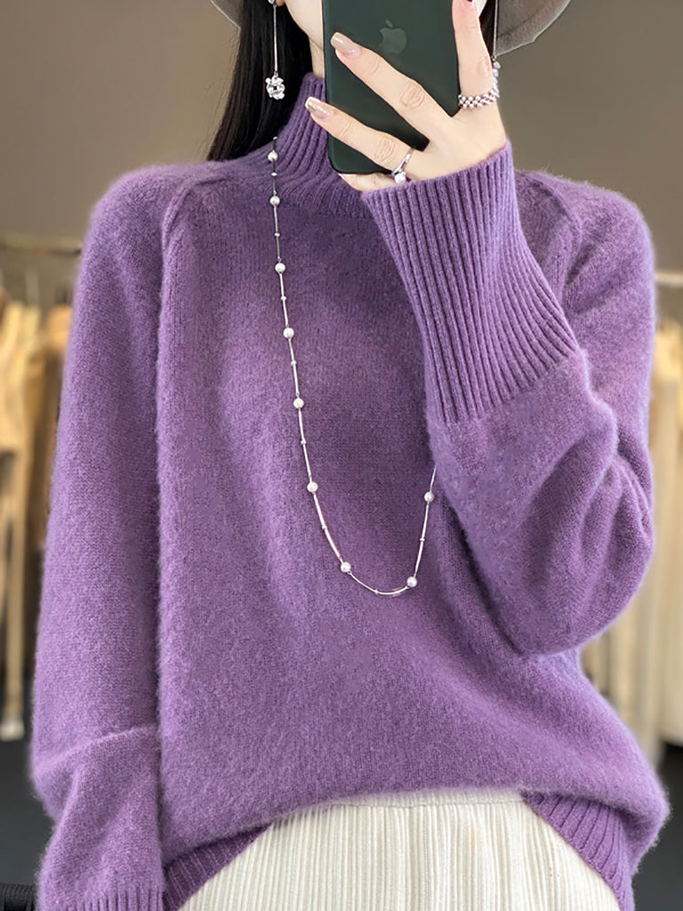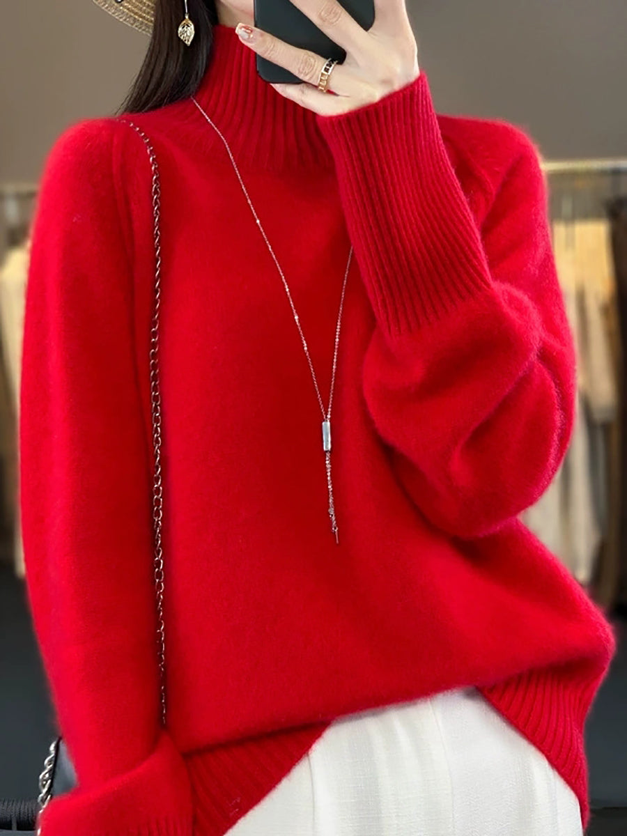 Dámský zimní ležérní pletený svetr s čistými barvami