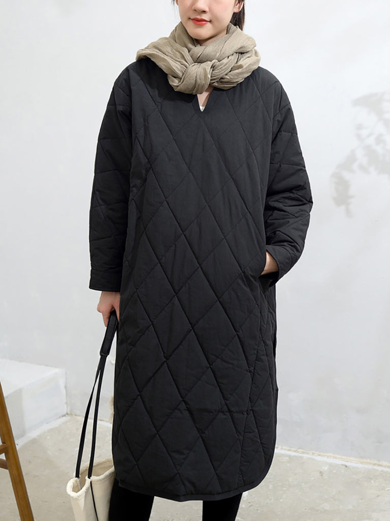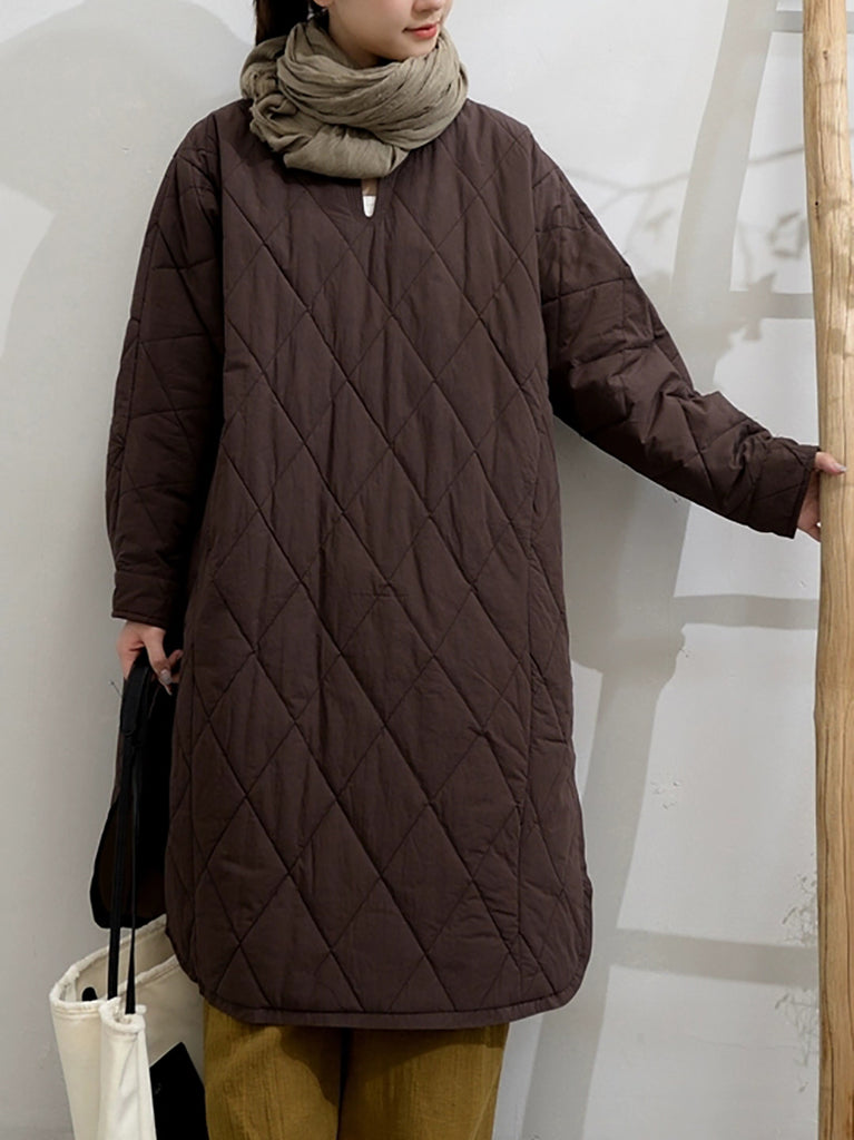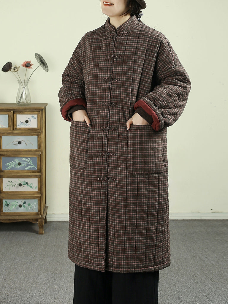 Dámský zimní retro kostkovaný prošívaný kabát se stojáčkem