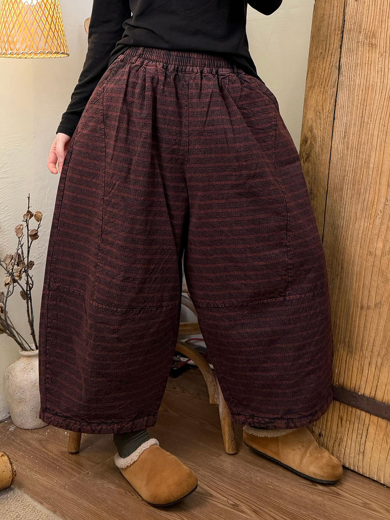 Dámské zimní retro kostkované pruhované rovné prošívané kalhoty