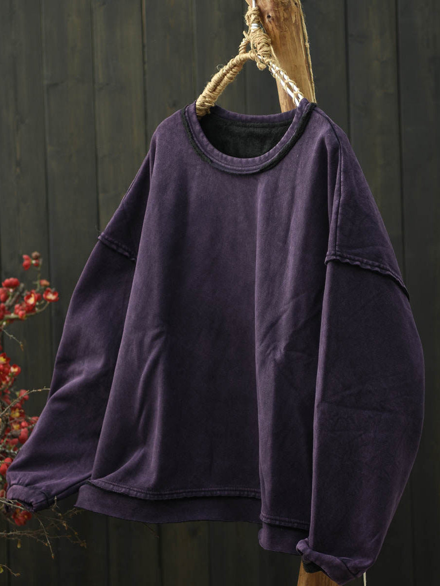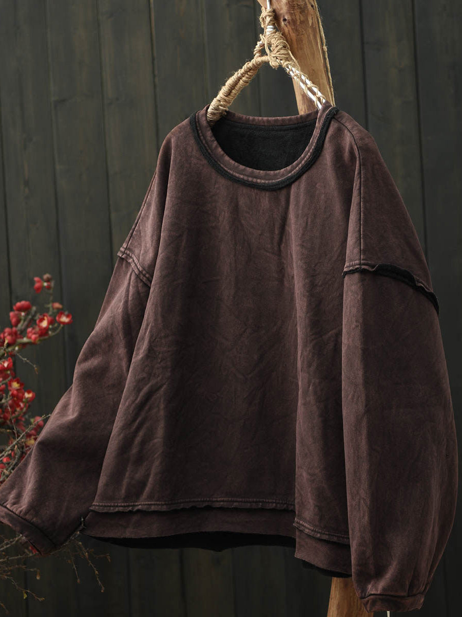 Dámská retro podzimní halenka s flísovou podšívkou a výstřihem do O-neck