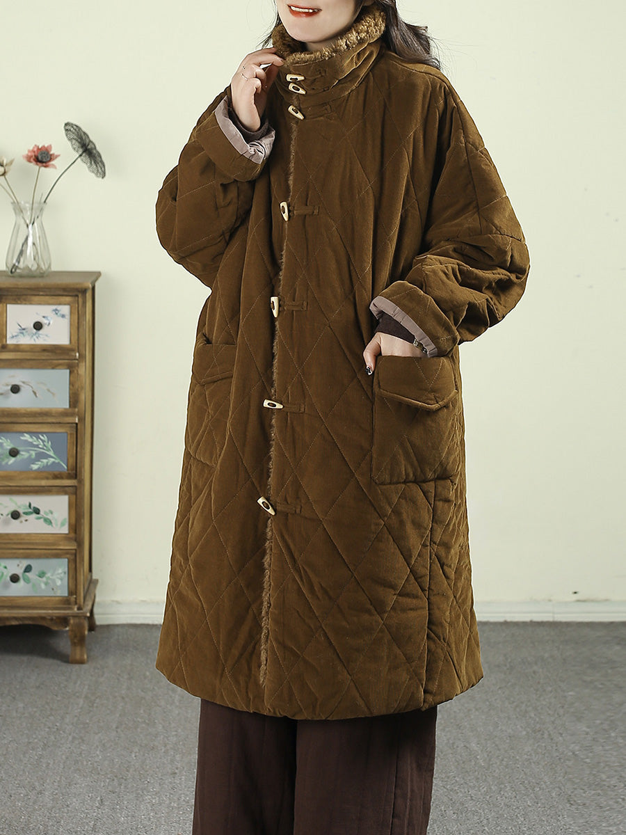 Dámský zimní retro manšestrový fleecový prošívaný kabát