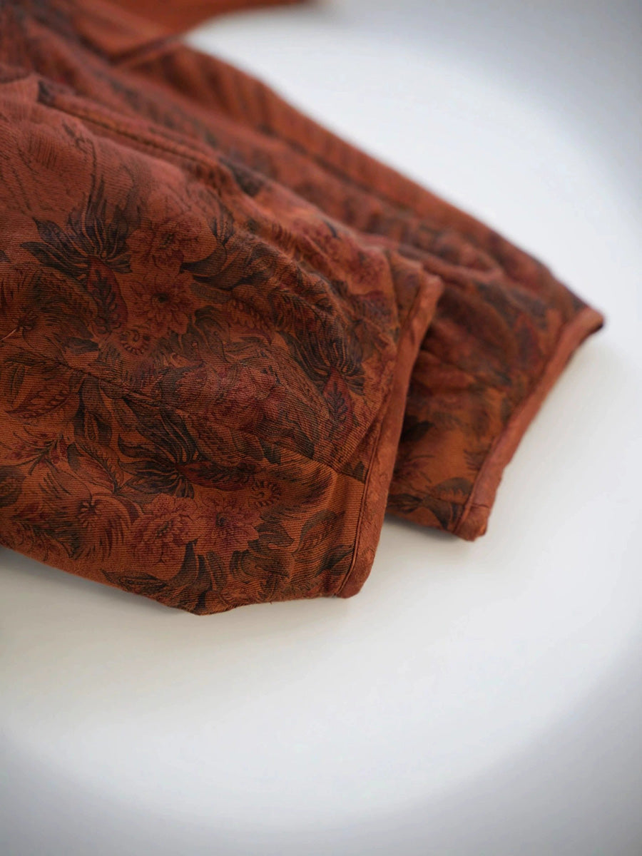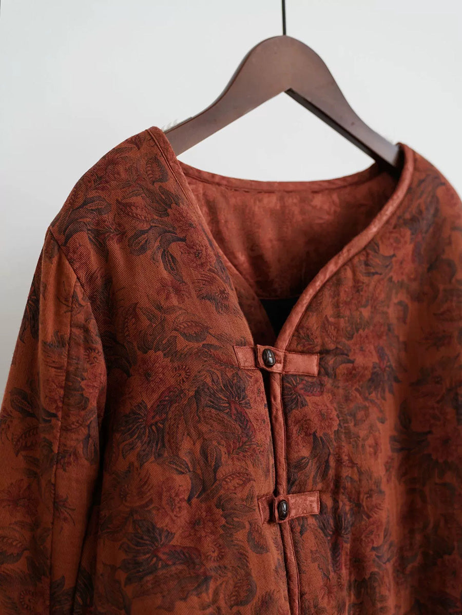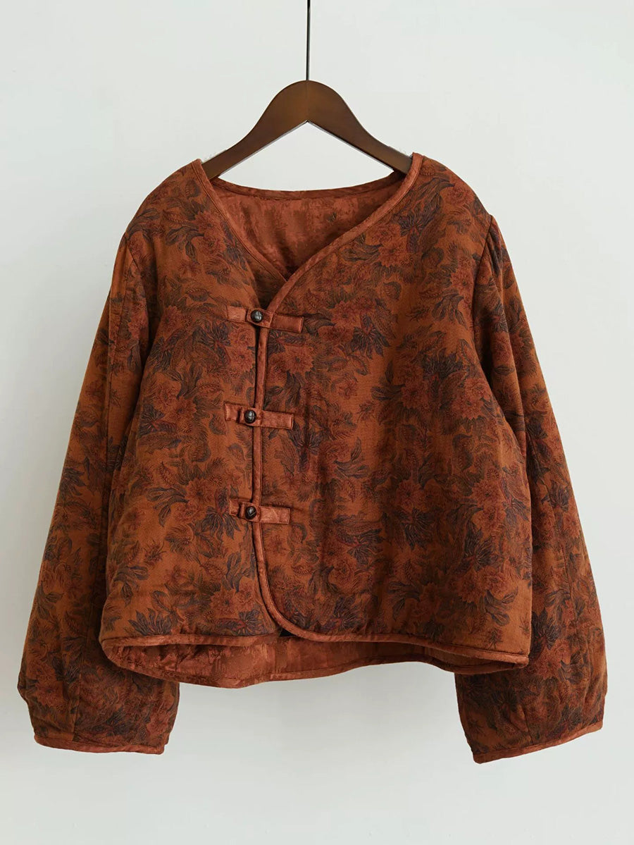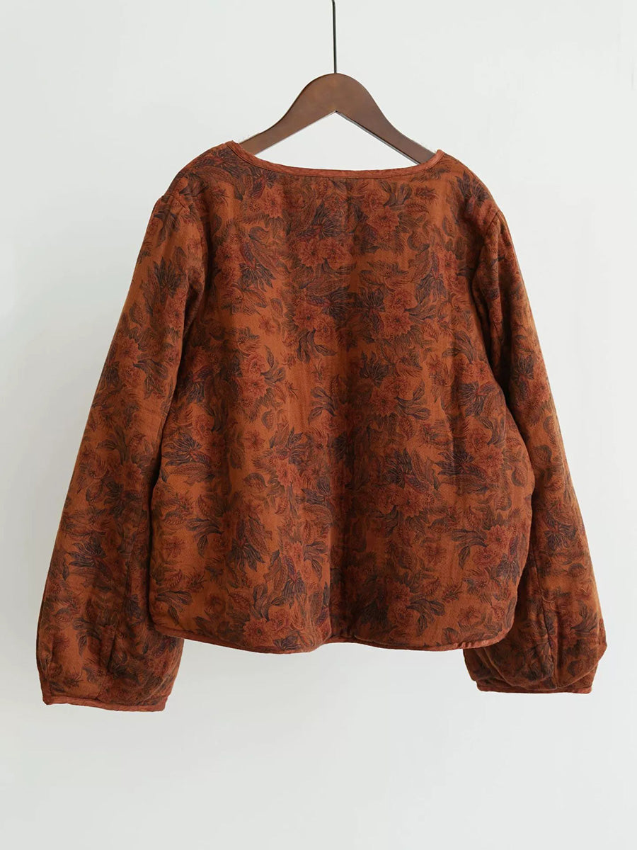 Dámský retro květinový prošívaný kabát ze 100% bavlny s výstřihem do V
