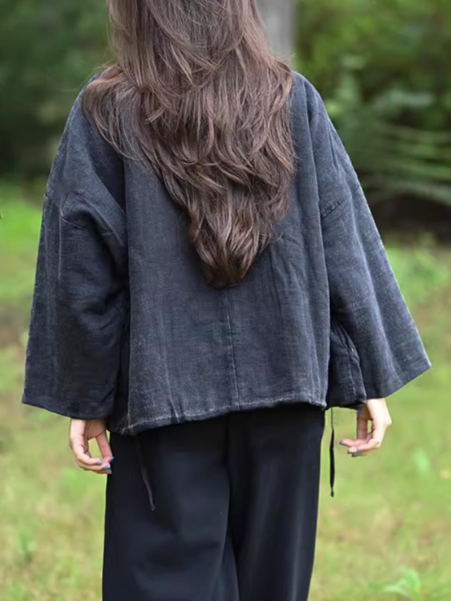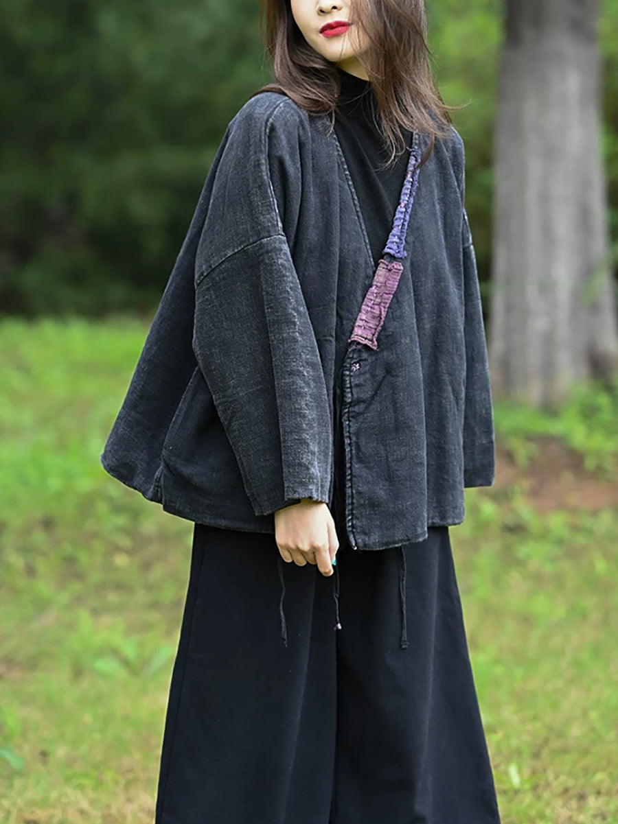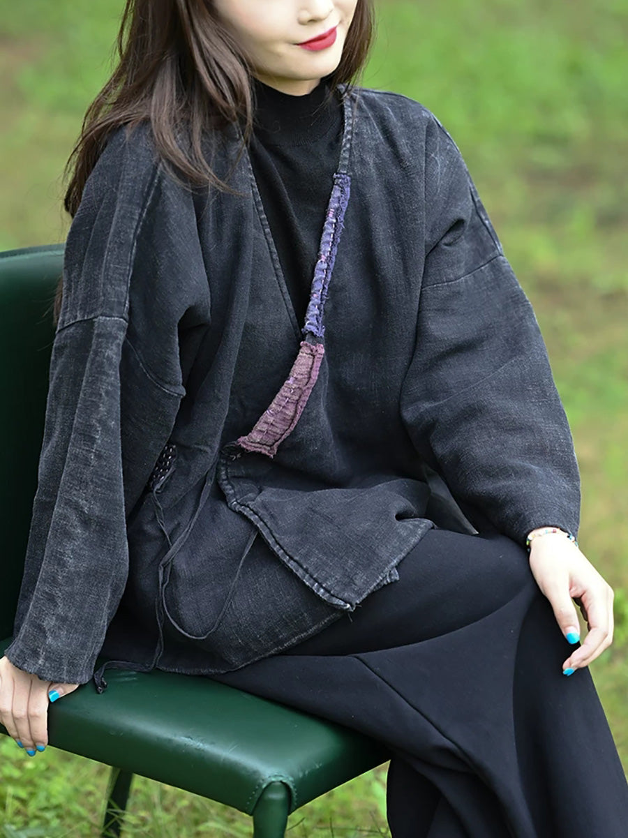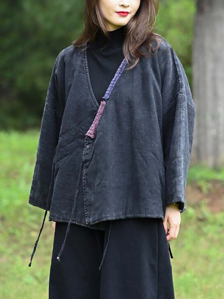 Dámský zimní retro patchworkový kabát s výstřihem do V